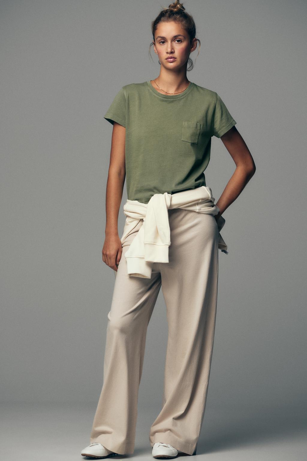 Футболка из хлопковой пряжи. Круглый вырез и короткие рукава. Нагрудный накладной карман.