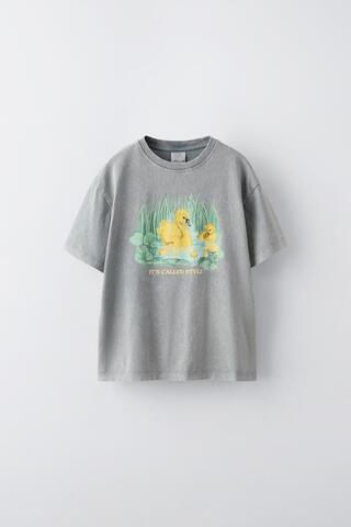 ZARA ФУТБОЛКА ИЗ ТКАНИ С ЭФФЕКТОМ ПОТЕРТОСТИ, АНТРАЦИТОВО-СЕРЫЙ
