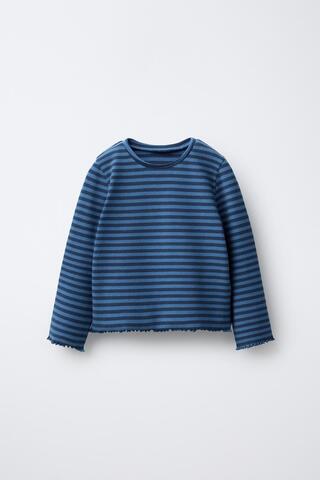 ZARA ФУТБОЛКА ИЗ ТКАНИ В ПОЛОСКУ, СИНИЙ