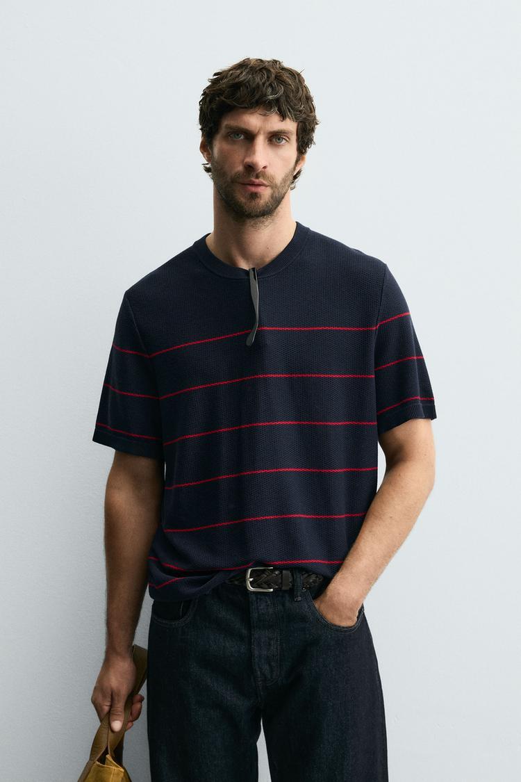 ZARA ФУТБОЛКА ИЗ ЖАККАРДОВОГО ТРИКОТАЖА В ПОЛОСКУ, ПОЛОСКИ