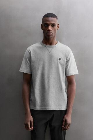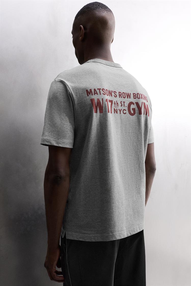 ZARA ФУТБОЛКА КОЛОР-БЛОК С ВЫШИВКОЙ, СЕРЫЙ МЕЛАНЖ