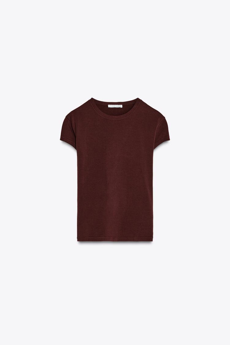 ZARA ФУТБОЛКА ОБЛЕГАЮЩЕГО КРОЯ С КОРОТКИМИ РУКАВАМИ, БУРГУНДИ