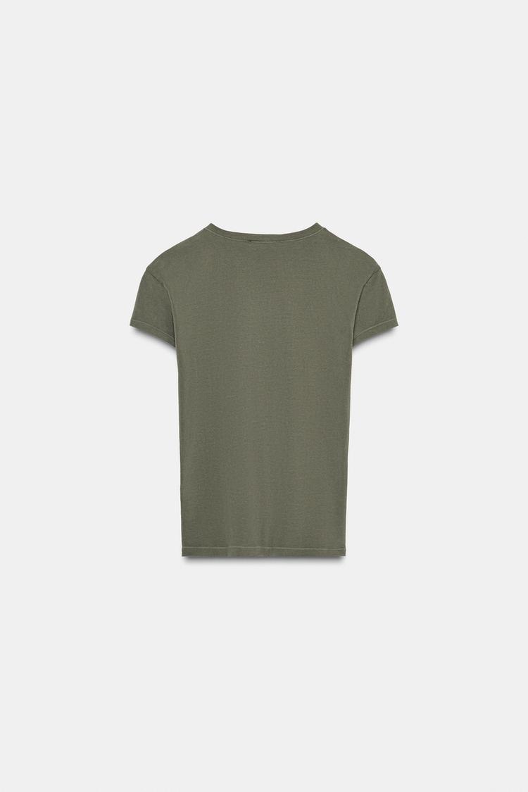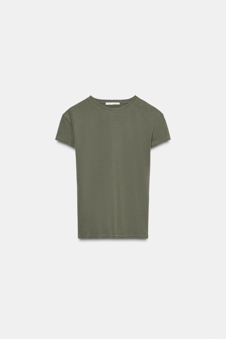 ZARA ФУТБОЛКА ОБЛЕГАЮЩЕГО КРОЯ С КОРОТКИМИ РУКАВАМИ, ХАКИ