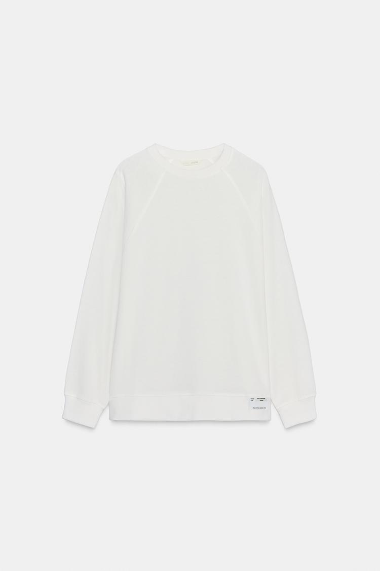 ZARA ФУТБОЛКА ОВЕРСАЙЗ С ДЛИННЫМИ РУКАВАМИ, БЕЛЫЙ