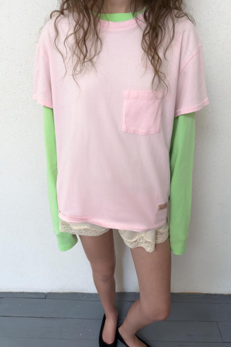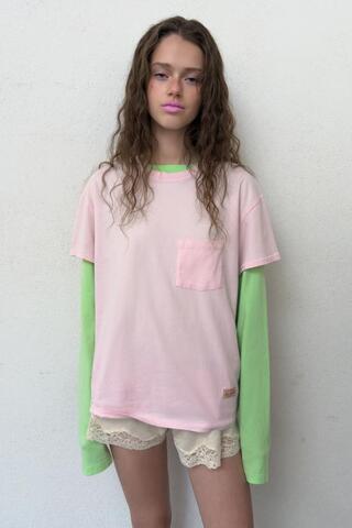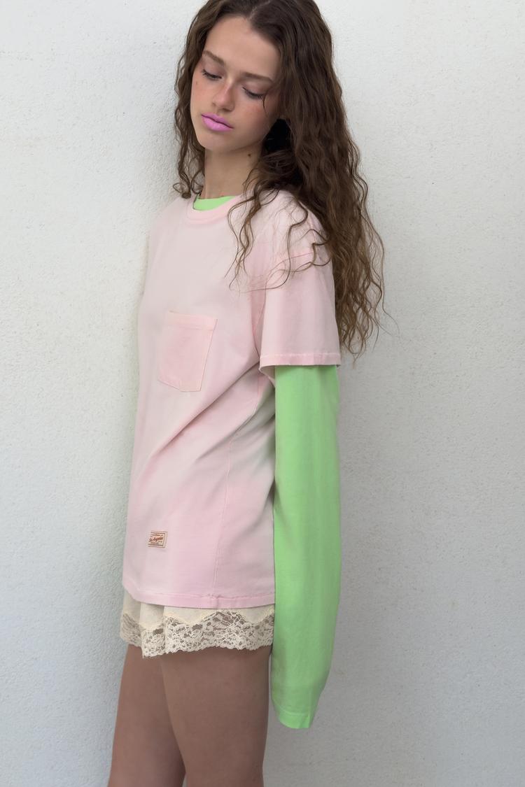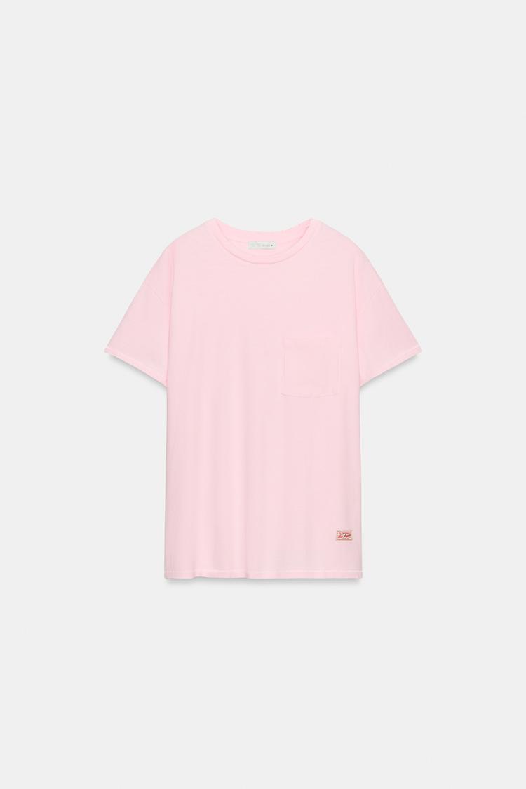 ZARA ФУТБОЛКА ОВЕРСАЙЗ С КАРМАНОМ, РОЗОВЫЙ