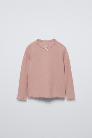 ZARA ФУТБОЛКА POINTELLE С БАНТОМ, СВЕТЛО-РОЗОВЫЙ