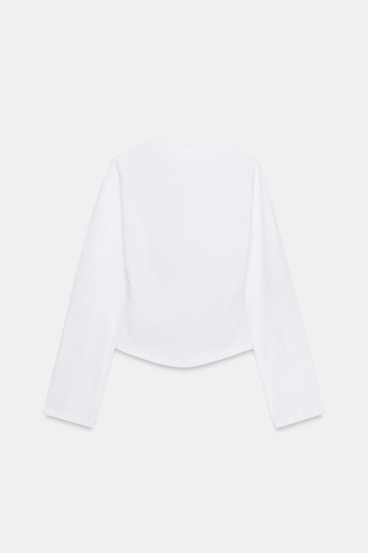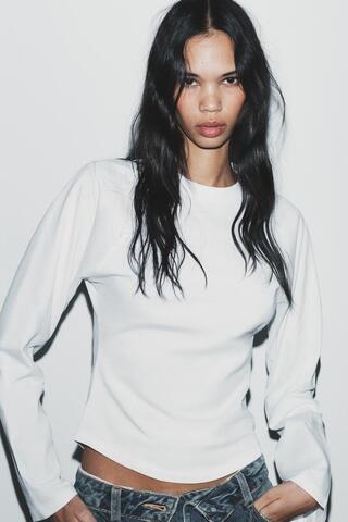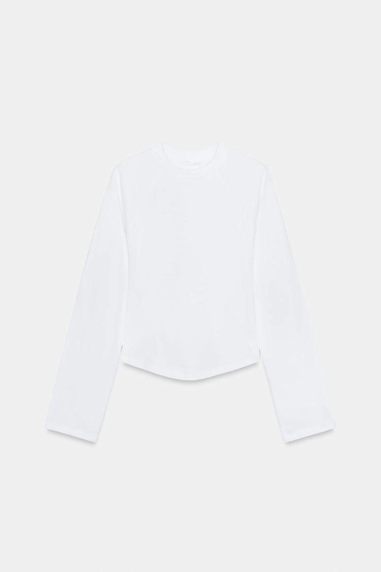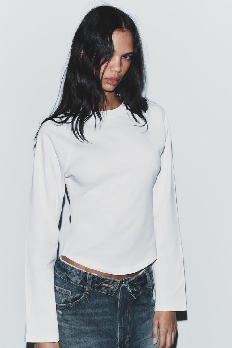 ZARA ФУТБОЛКА РЕГЛАН С ДЛИННЫМИ РУКАВАМИ, БЕЛЫЙ