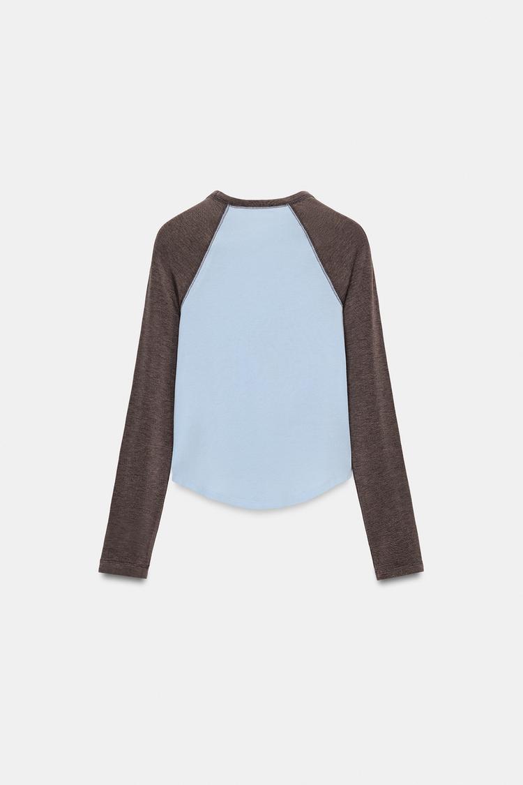 ZARA ФУТБОЛКА РЕГЛАН С КОНТРАСТНЫМИ ДЕТАЛЯМИ, ГОЛУБОЙ