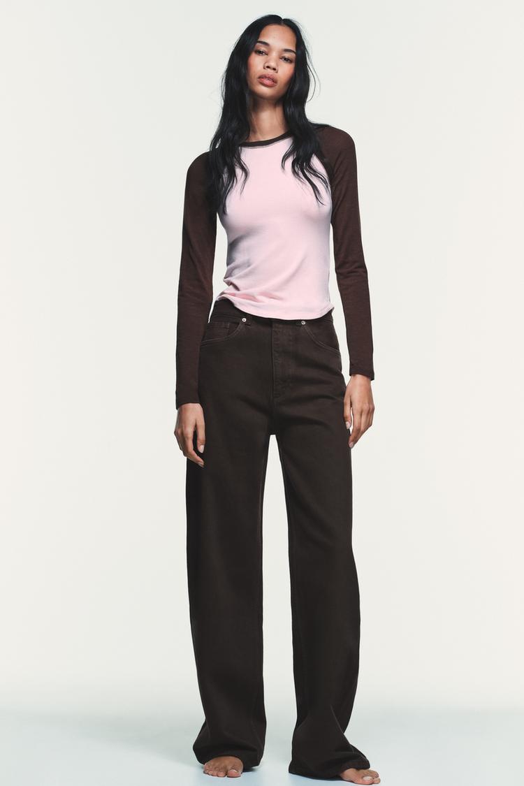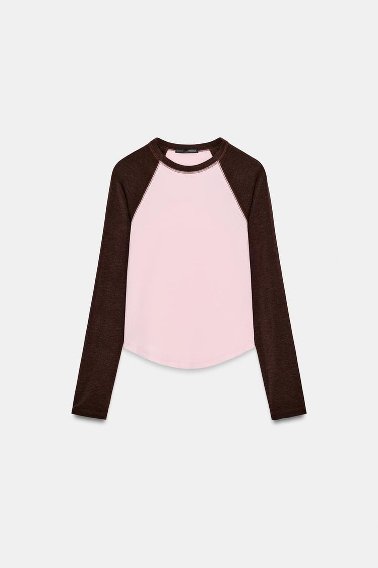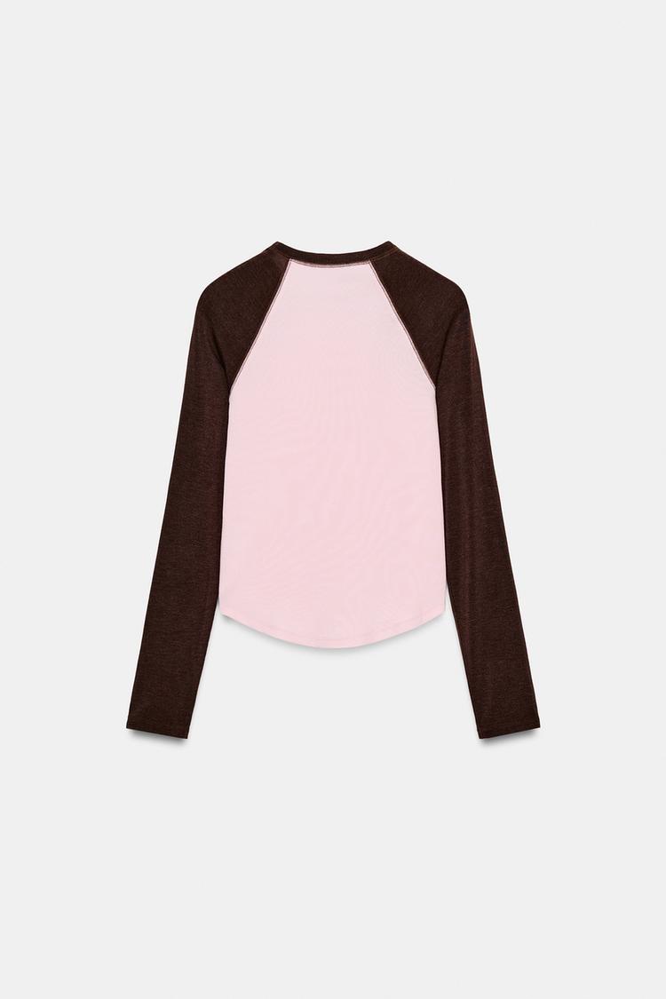 ZARA ФУТБОЛКА РЕГЛАН С КОНТРАСТНЫМИ ДЕТАЛЯМИ, ОТТЕНКИ КОРИЧНЕВОГО