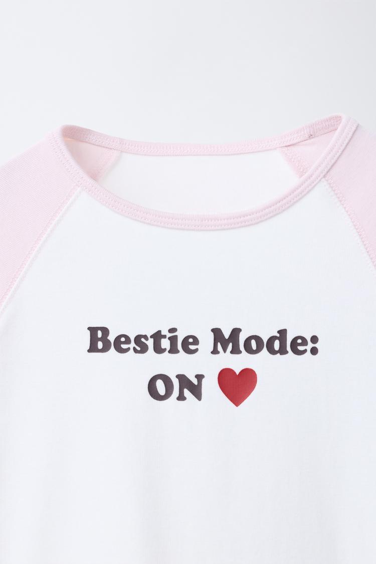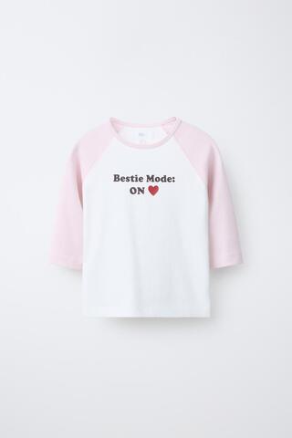 ZARA ФУТБОЛКА РЕГЛАН С НАДПИСЬЮ ИЗ МОДАЛА, РОЗОВЫЙ/БЕЛЫЙ