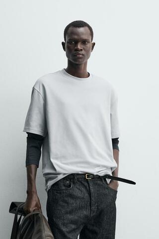 ZARA ФУТБОЛКА RELAXED FIT ИЗ ХЛОПКА, НЕБЕСНО-ГОЛУБОЙ