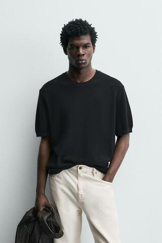 ZARA ФУТБОЛКА RELAXED FIT ИЗ ТРИКОТАЖА, МОРСКОЙ СИНИЙ