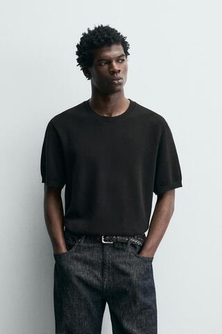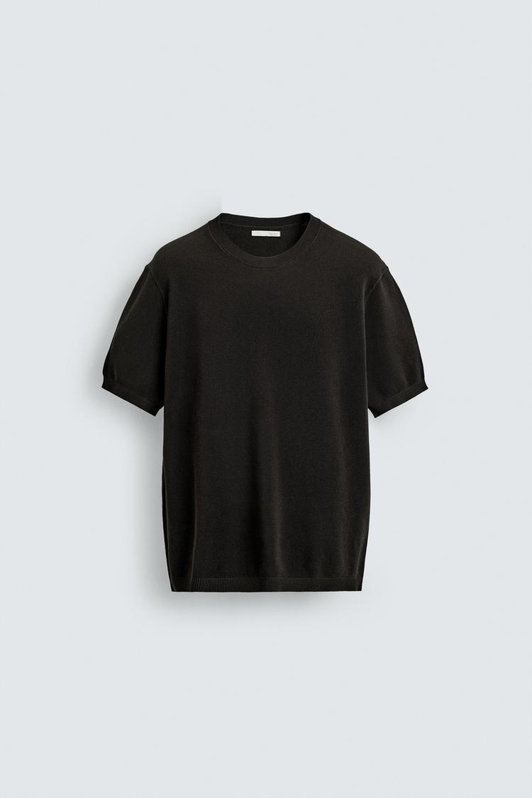 ZARA ФУТБОЛКА RELAXED FIT ИЗ ТРИКОТАЖА, ШОКОЛАДНЫЙ