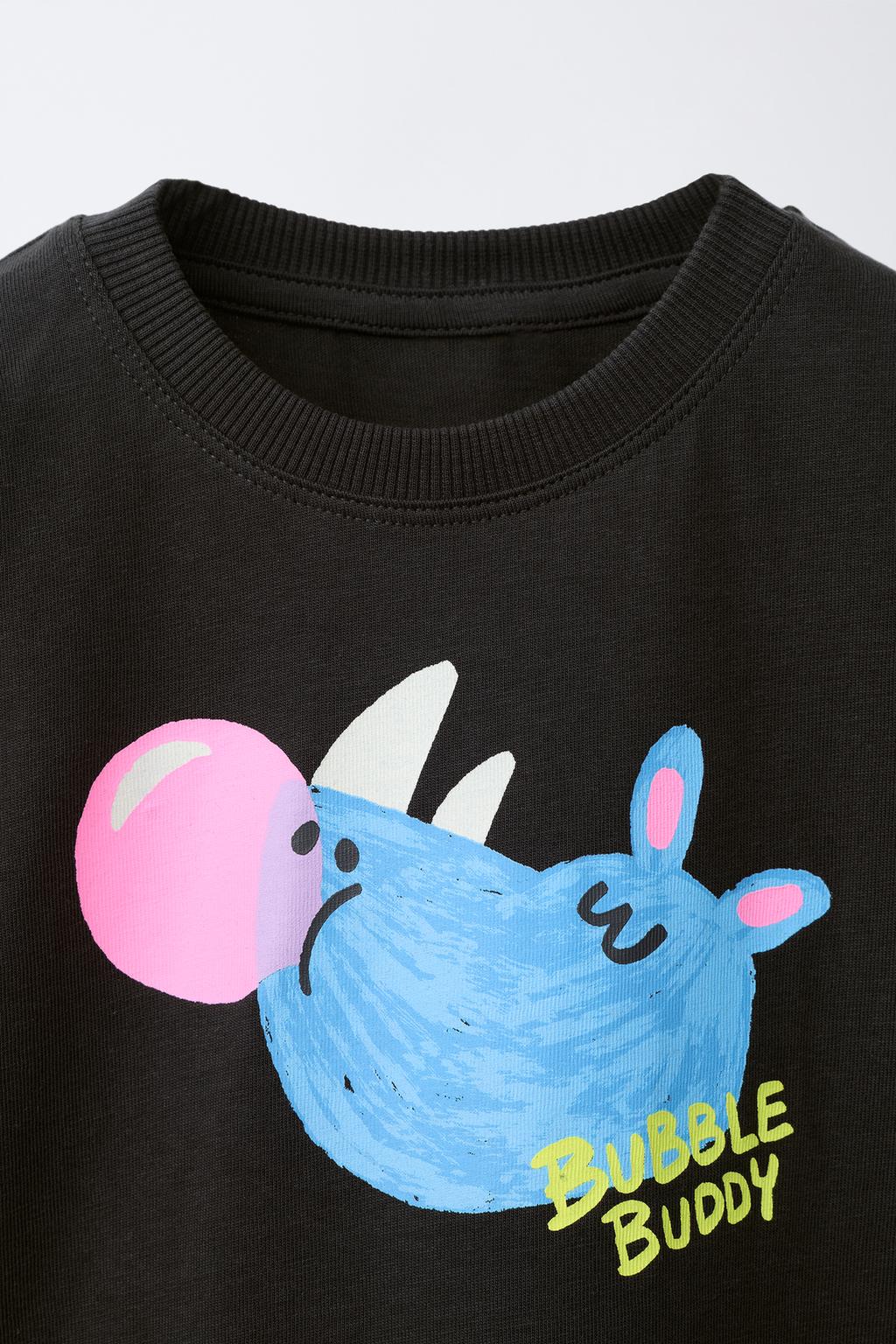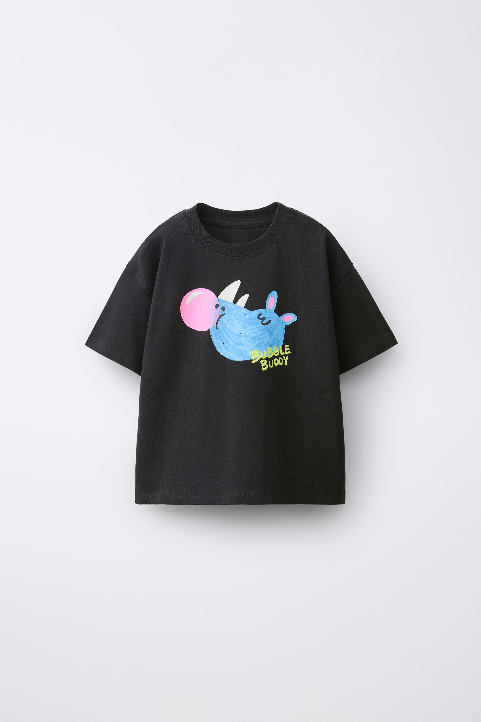 ZARA ФУТБОЛКА С АНИМАЛИСТИЧЕСКИМ ПРИНТОМ, АНТРАЦИТОВО-СЕРЫЙ