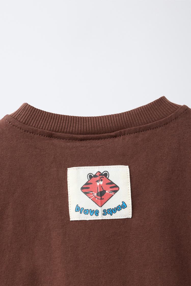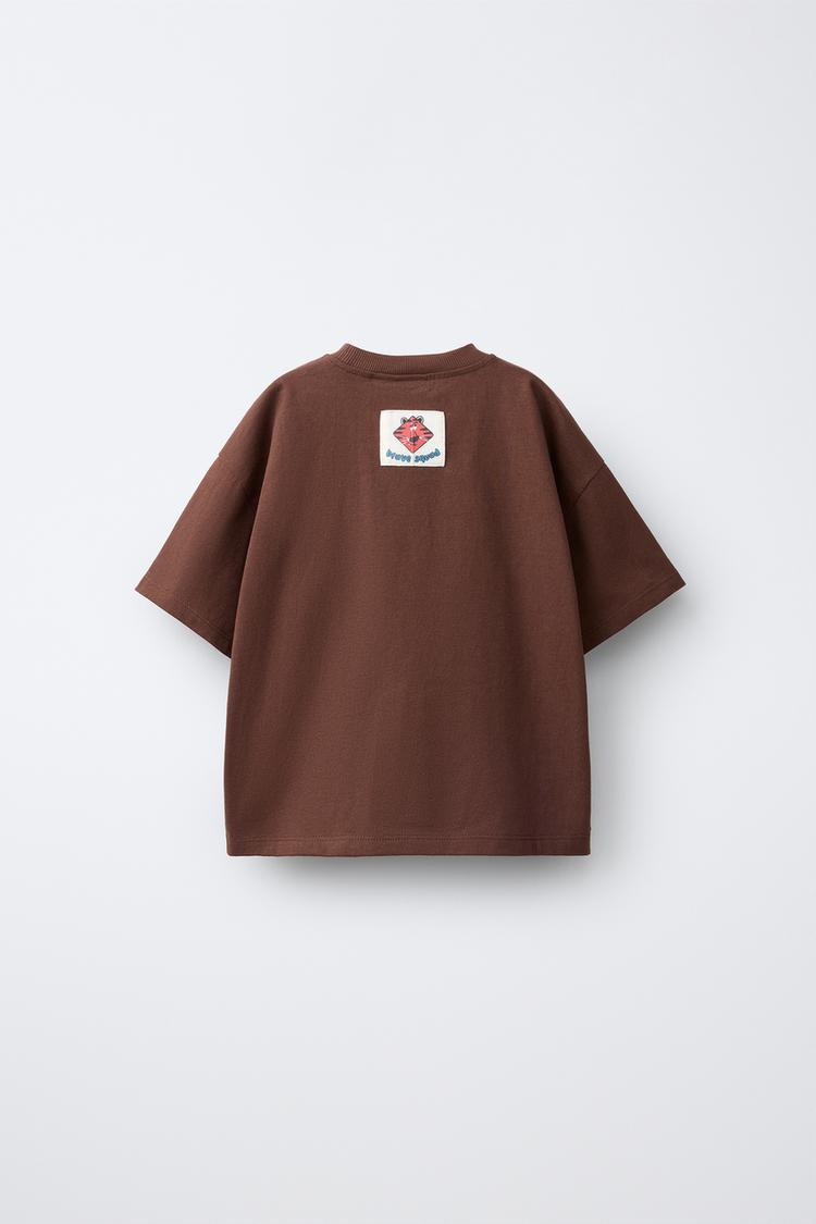 ZARA ФУТБОЛКА С АНИМАЛИСТИЧЕСКИМ ПРИНТОМ, ШОКОЛАДНЫЙ