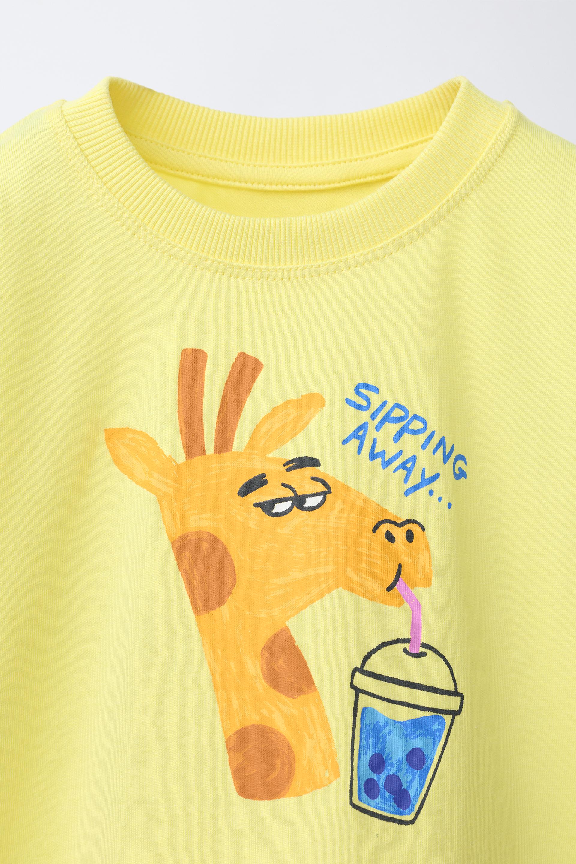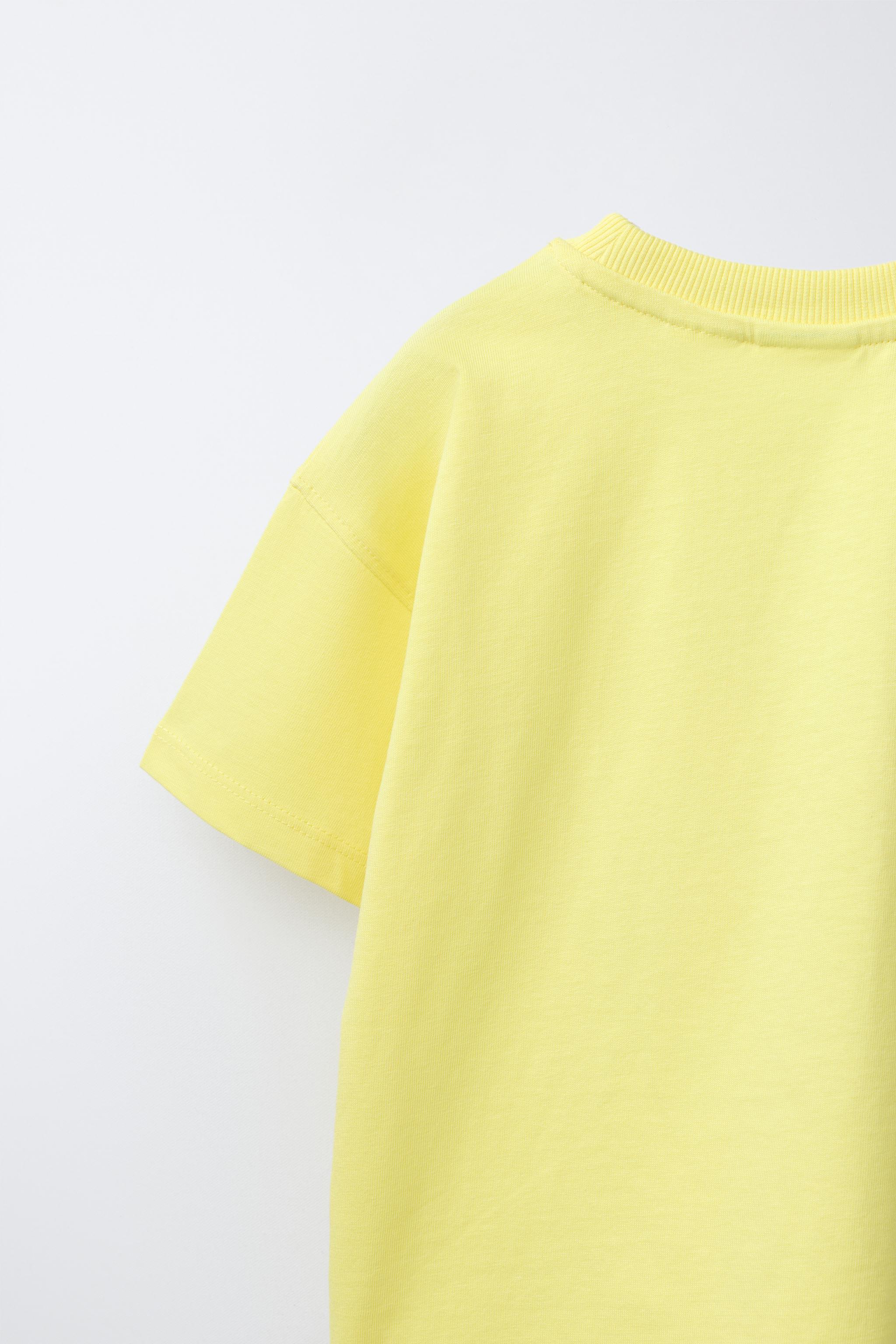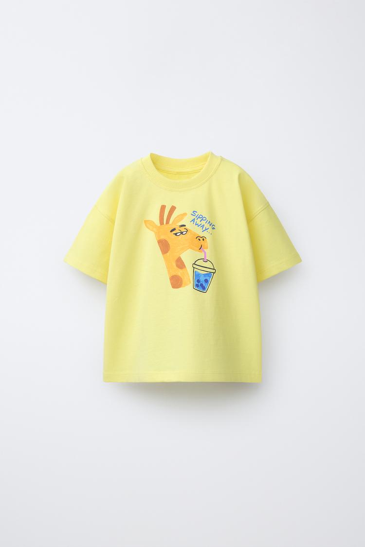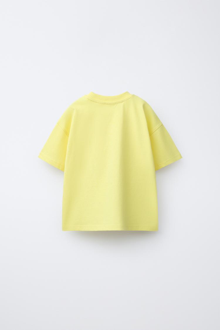 ZARA ФУТБОЛКА С АНИМАЛИСТИЧЕСКИМ ПРИНТОМ, СВЕТЛО-ЖЕЛТЫЙ