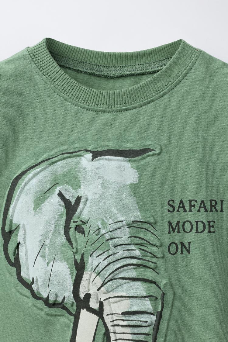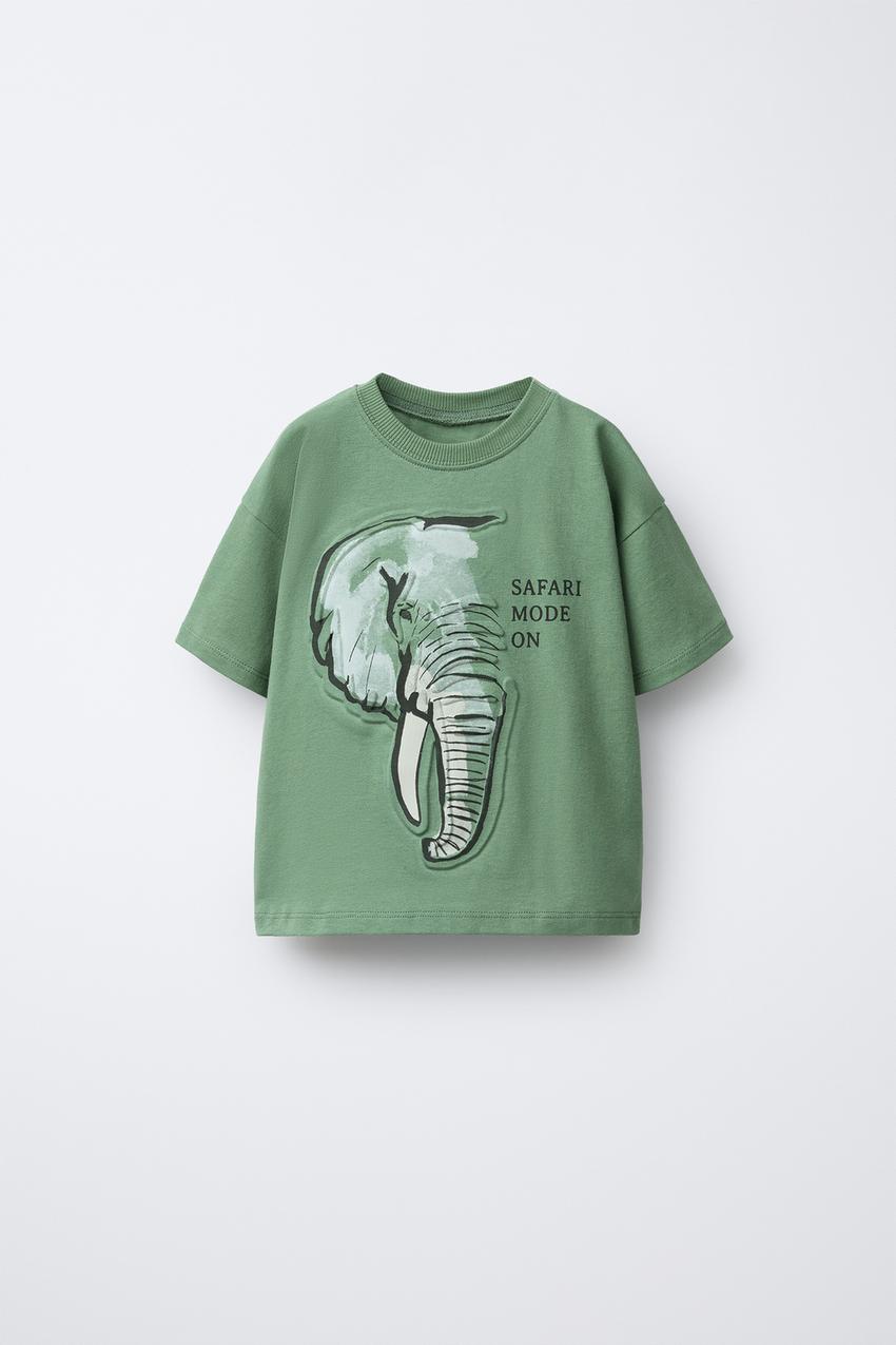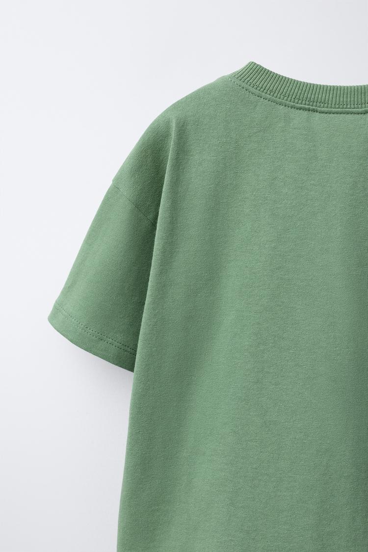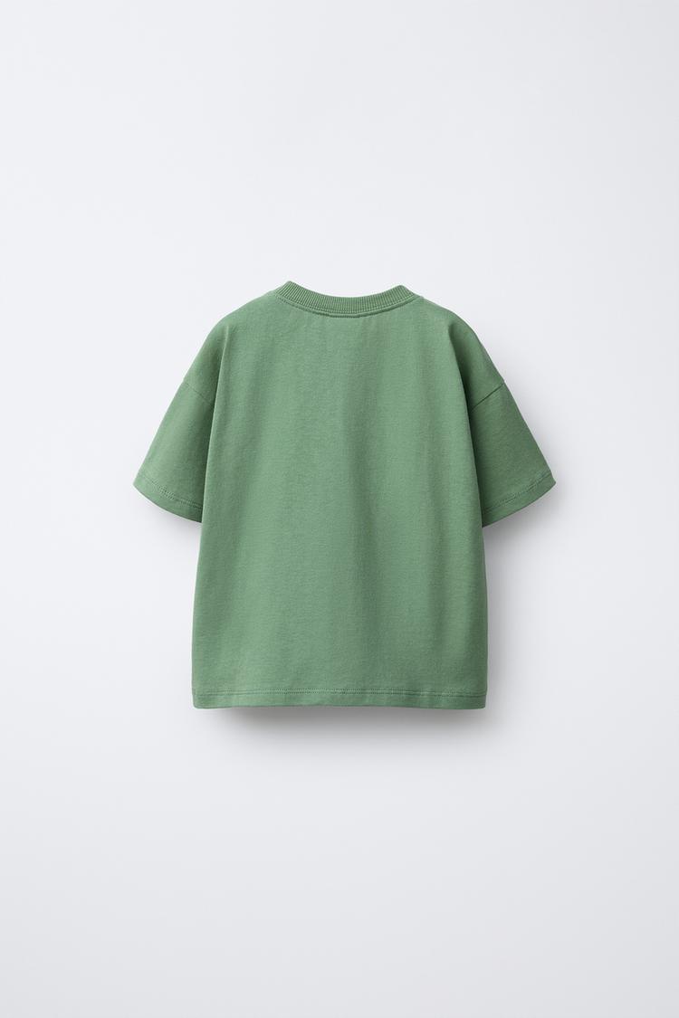 ZARA ФУТБОЛКА С АНИМАЛИСТИЧНЫМ РЕЛЬЕФНЫМ ПРИНТОМ, МЯГКИЙ ЗЕЛЕНЫЙ