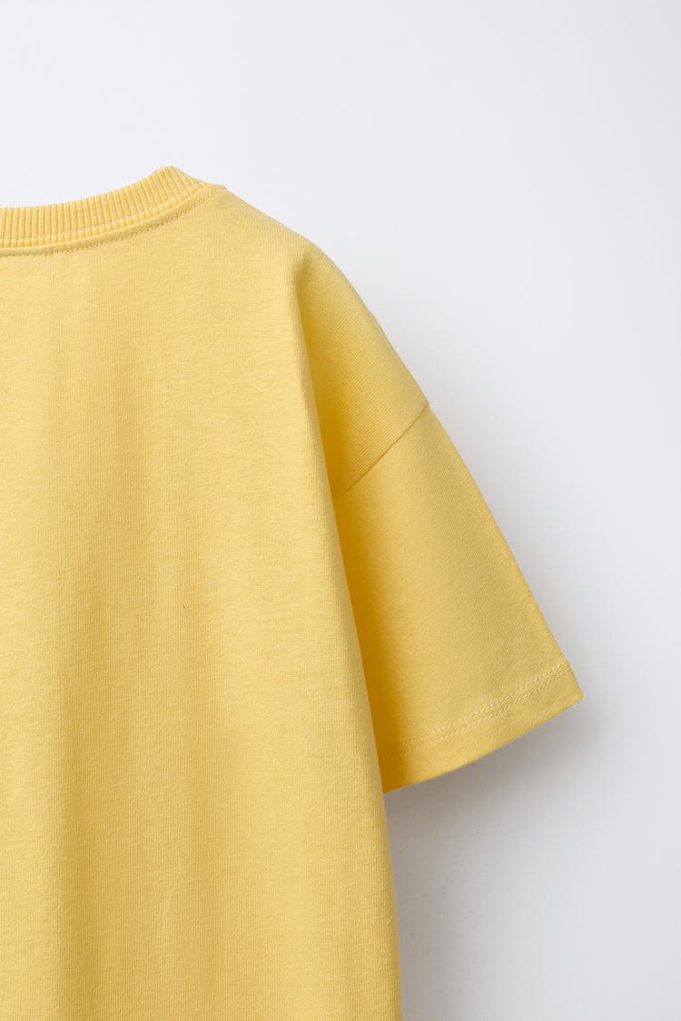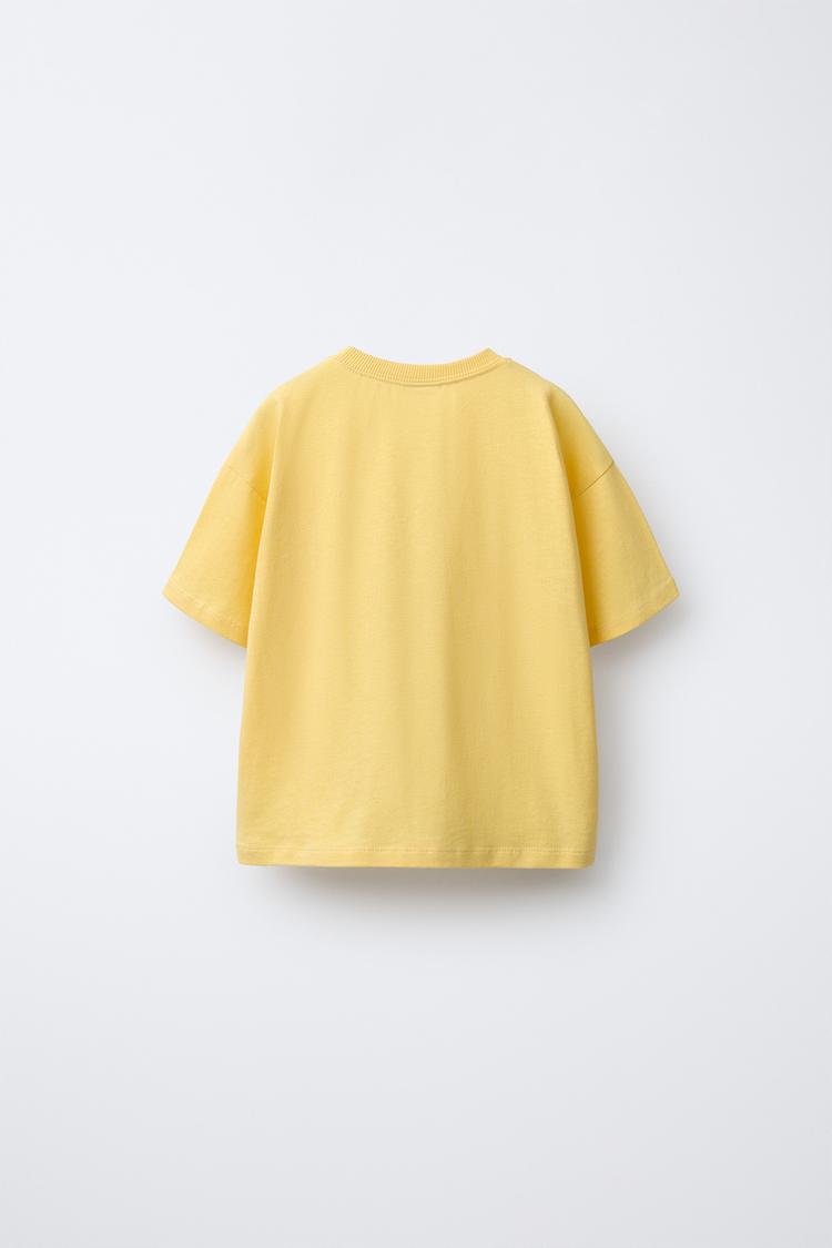 ZARA ФУТБОЛКА С АНИМАЛИСТИЧНЫМ РЕЛЬЕФНЫМ ПРИНТОМ, МЯГКИЙ ЖЕЛТЫЙ