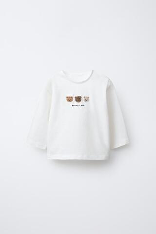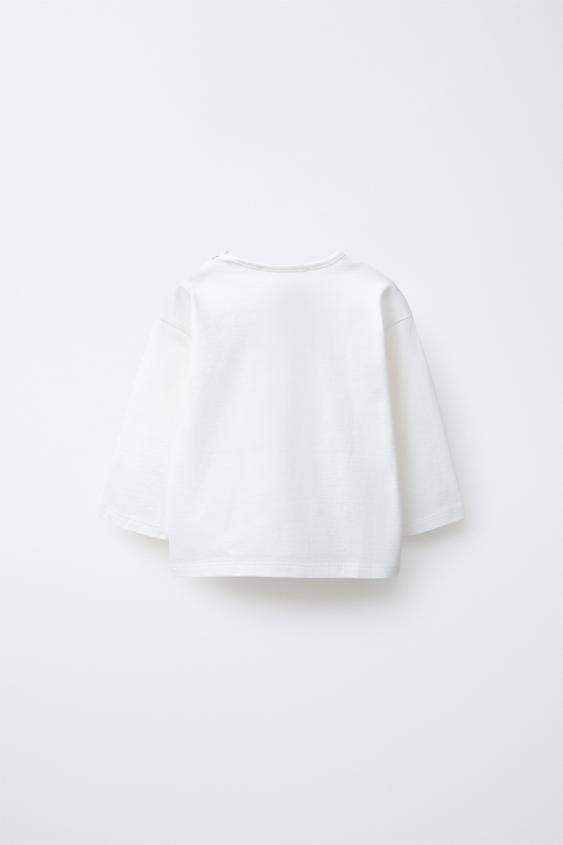 ZARA ФУТБОЛКА С АППЛИКАЦИЕЙ МЕДВЕДЕЙ ИЗ МАХРОВОЙ ТКАНИ, ЖЕЛТОВАТО-БЕЛЫЙ