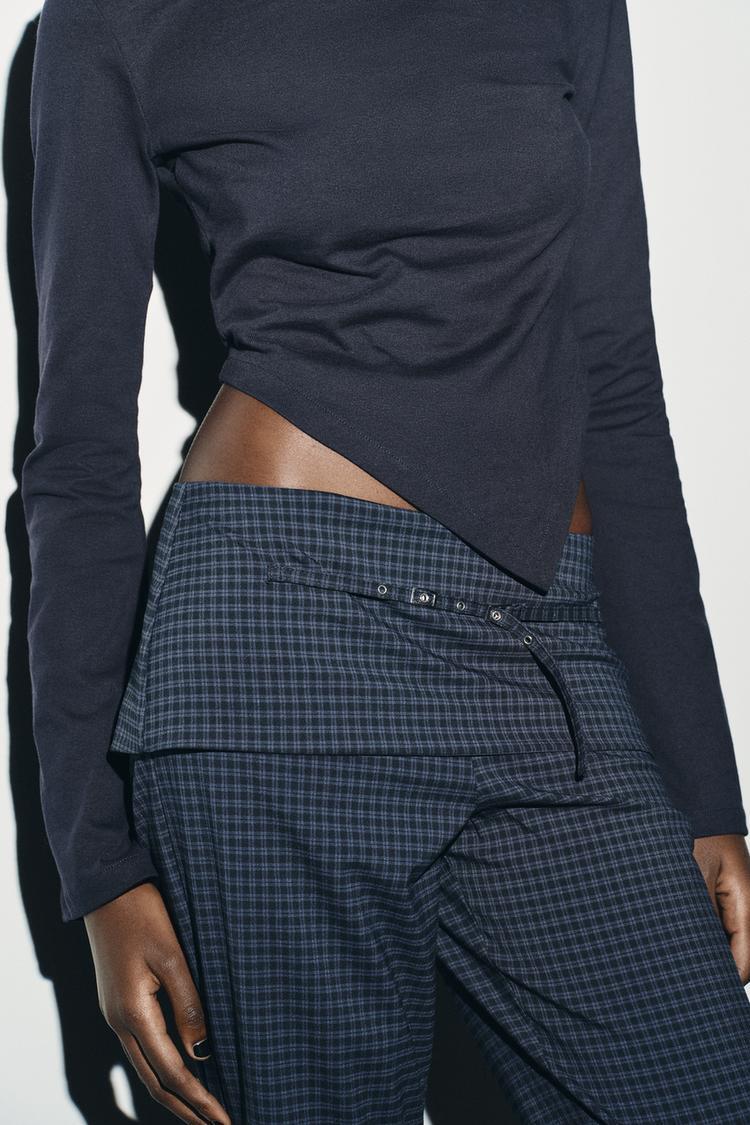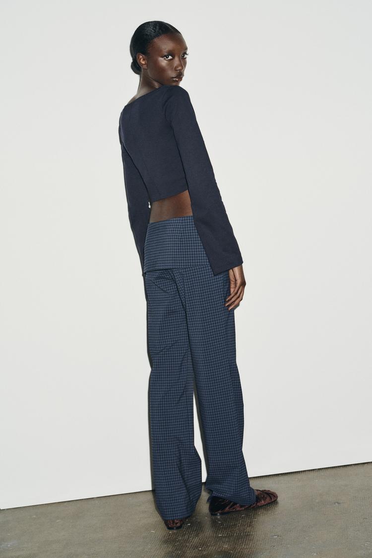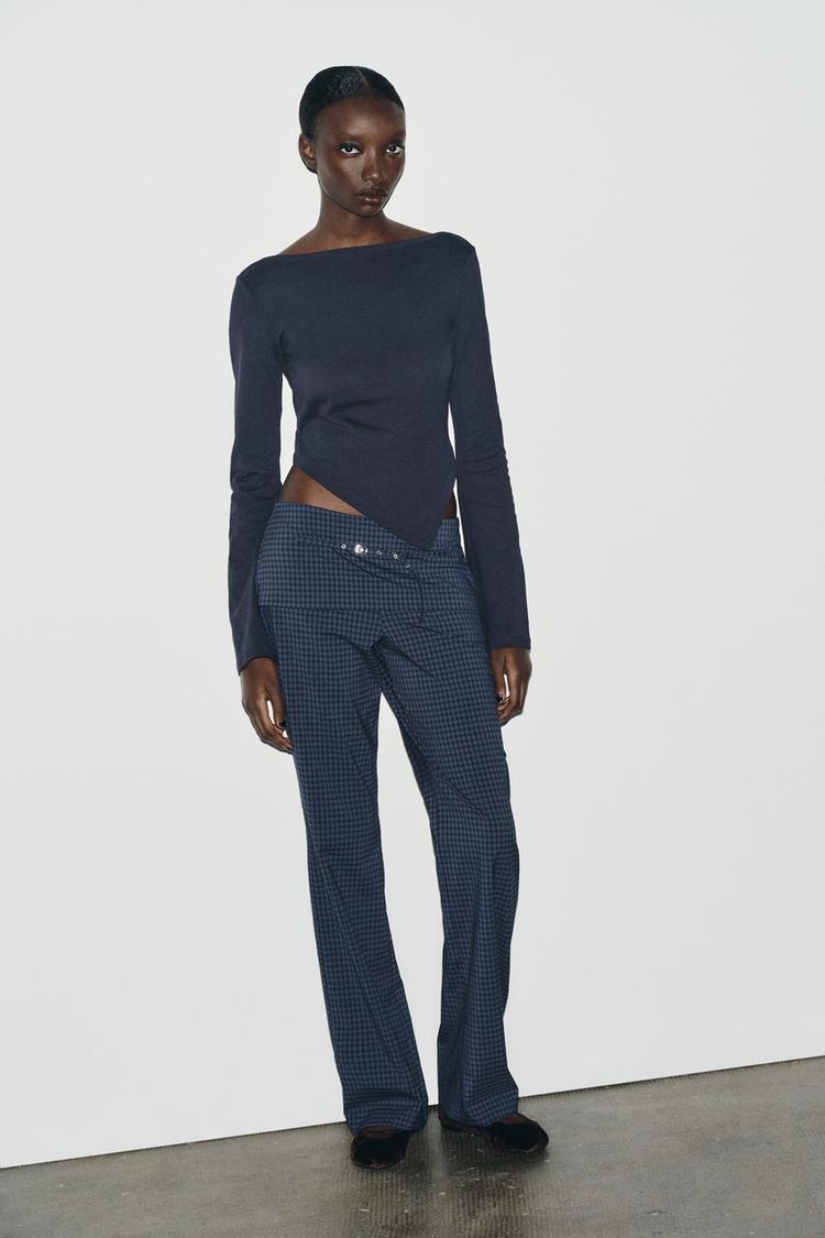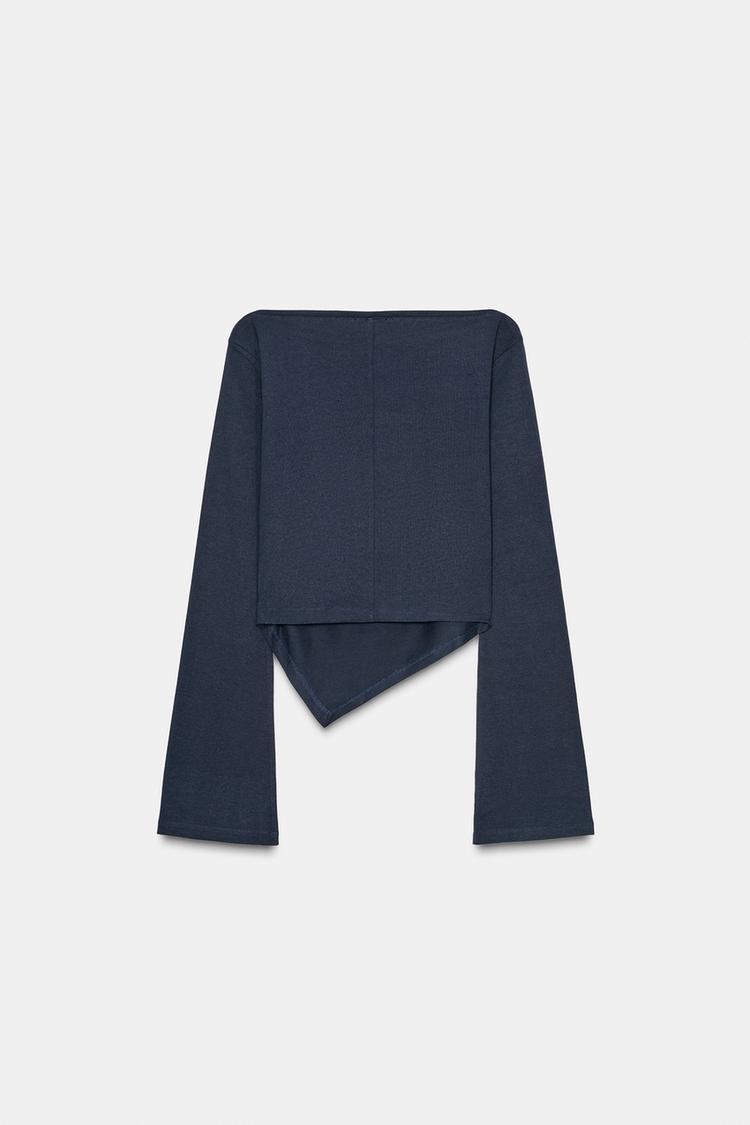 ZARA ФУТБОЛКА С АСИММЕТРИЧНЫМ ВЫРЕЗОМ ЛОДОЧКОЙ, МОРСКОЙ СИНИЙ