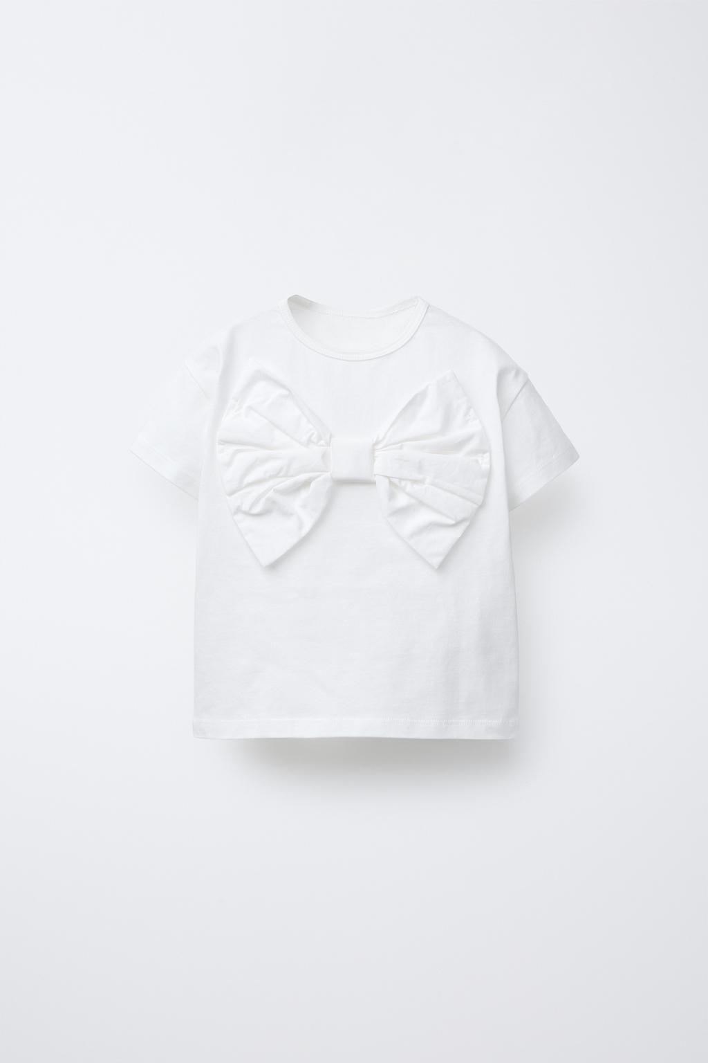 ZARA ФУТБОЛКА С БАНТОМ ИЗ ПОПЛИНА, БЕЛЫЙ