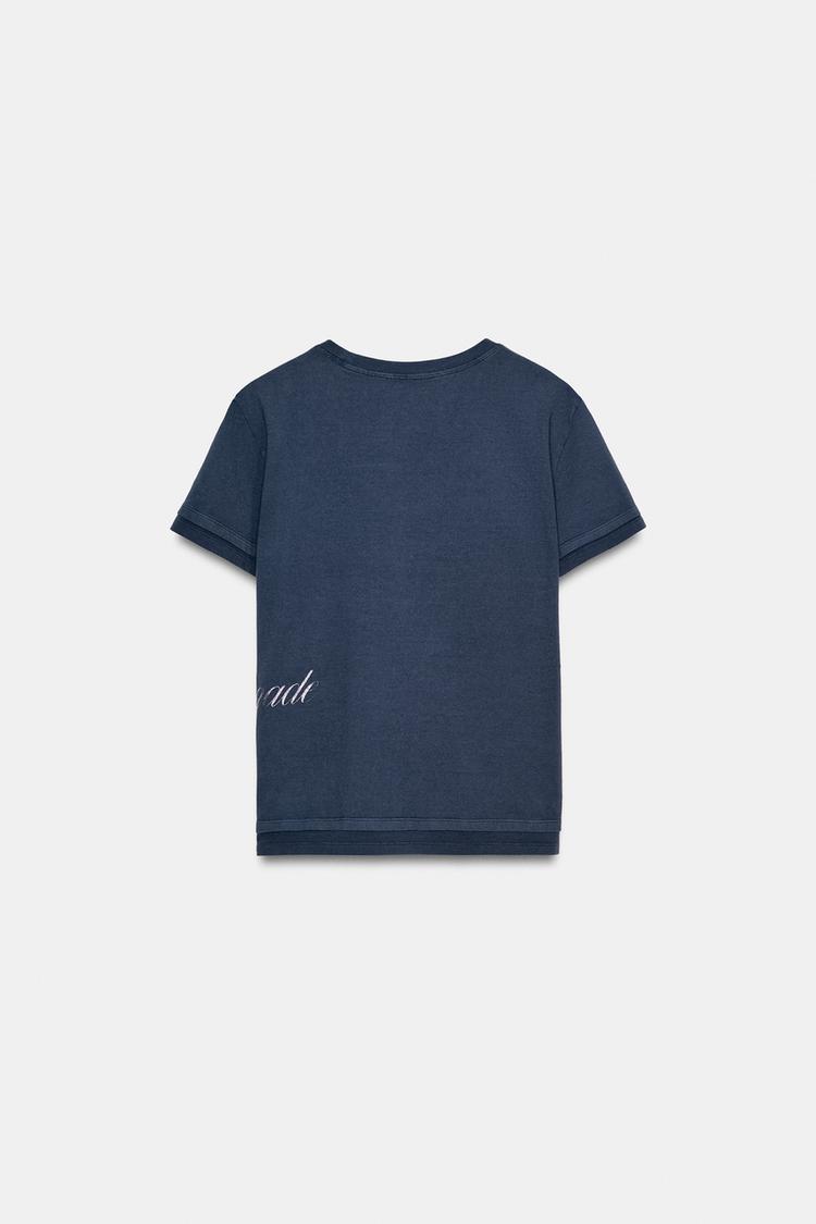 ZARA ФУТБОЛКА С БЛЕСТЯЩЕЙ НАДПИСЬЮ, СИНИЙ