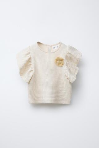 ZARA ФУТБОЛКА С БЛЕСТЯЩИМ ЦВЕТКОМ, ЗОЛОТОЙ