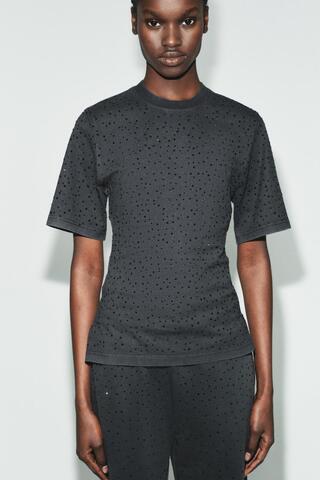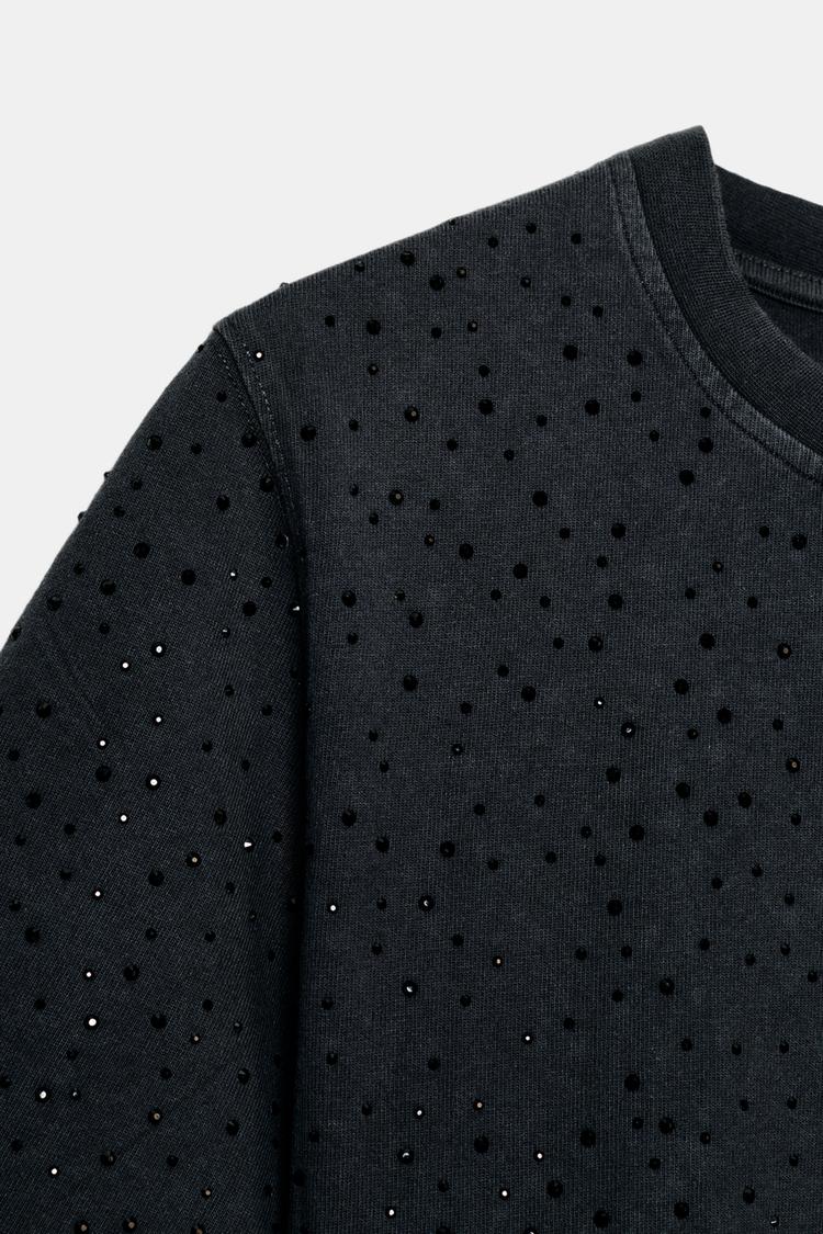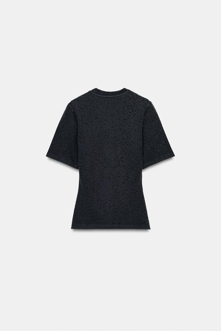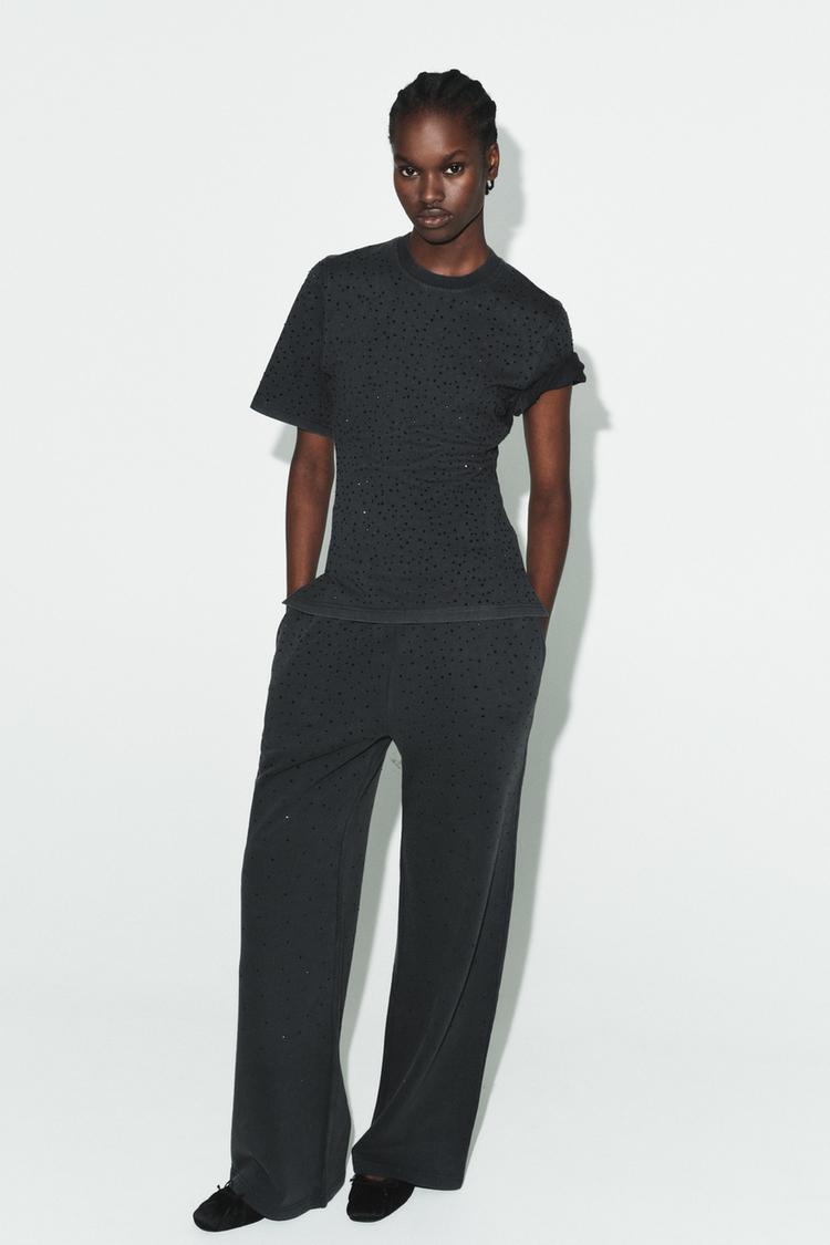 ZARA ФУТБОЛКА С БЛЁСТКАМИ С КОРОТКИМИ РУКАВАМИ, ЧЕРНЫЙ