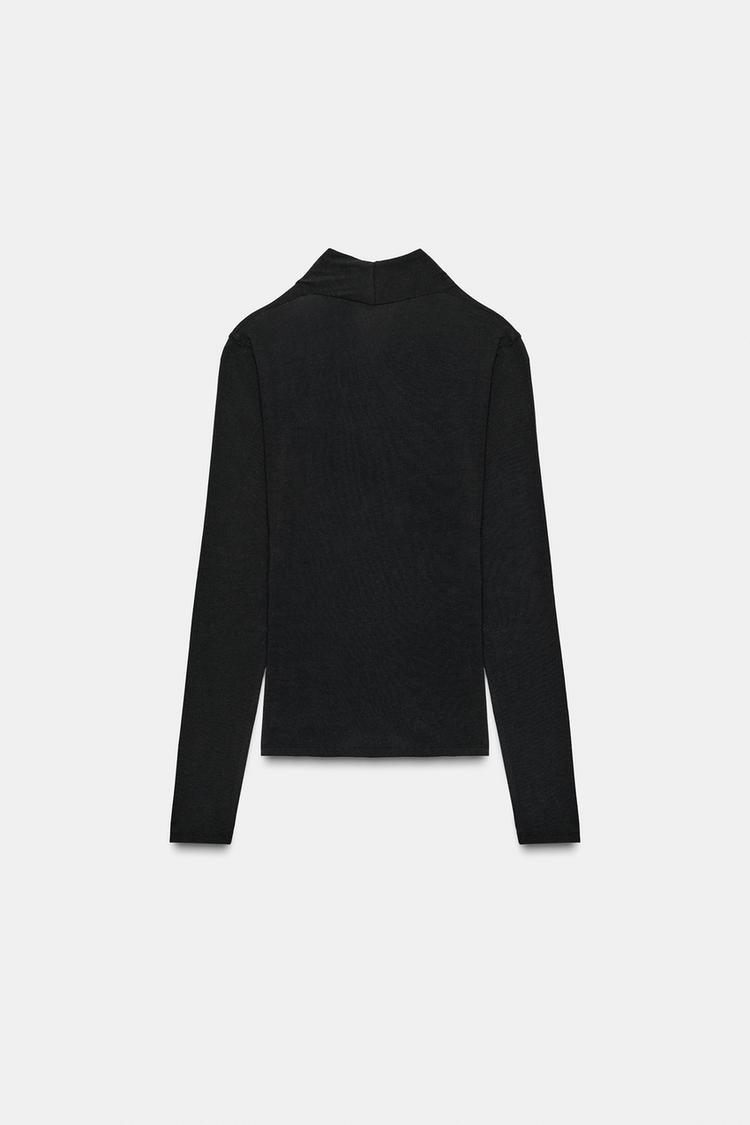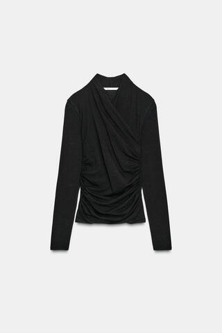 ZARA ФУТБОЛКА С БОКОВОЙ ДРАПИРОВКОЙ, ЧЕРНЫЙ