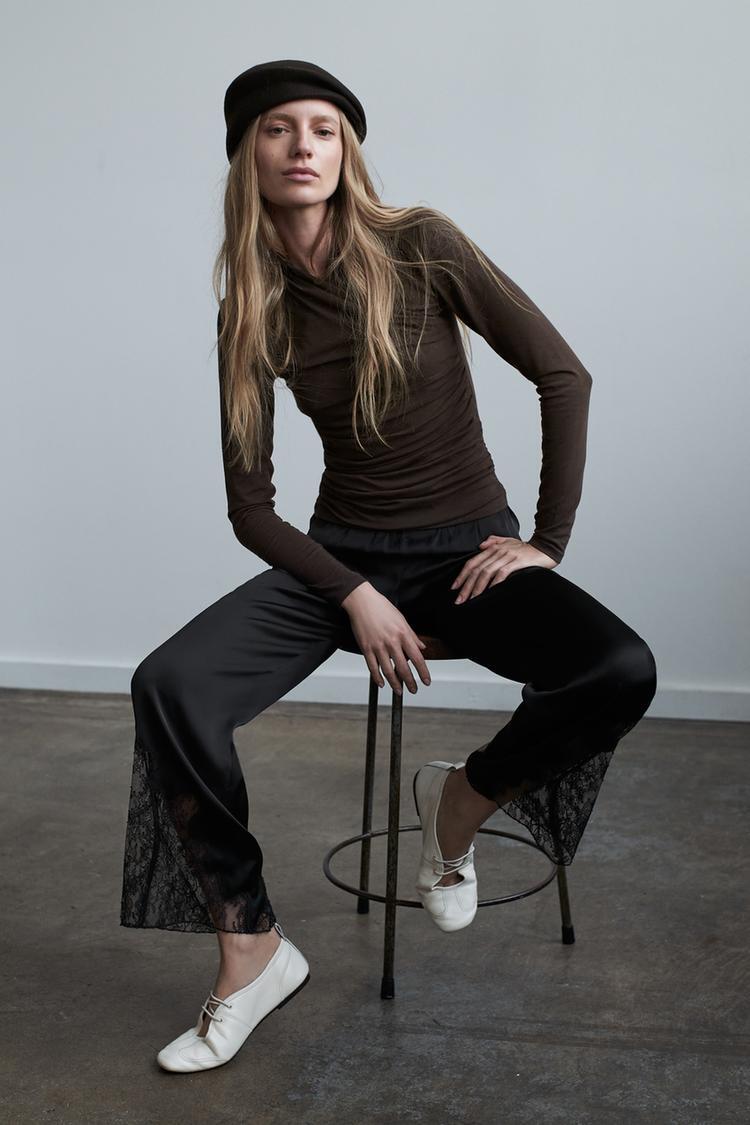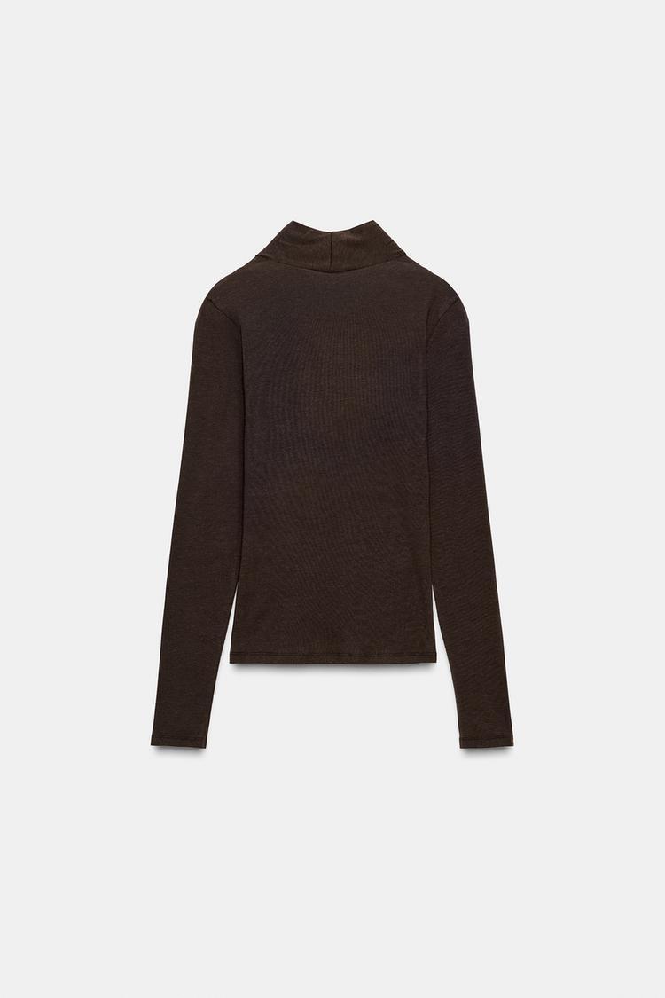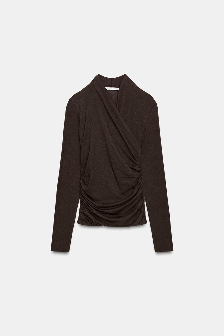 ZARA ФУТБОЛКА С БОКОВОЙ ДРАПИРОВКОЙ, ШОКОЛАДНЫЙ