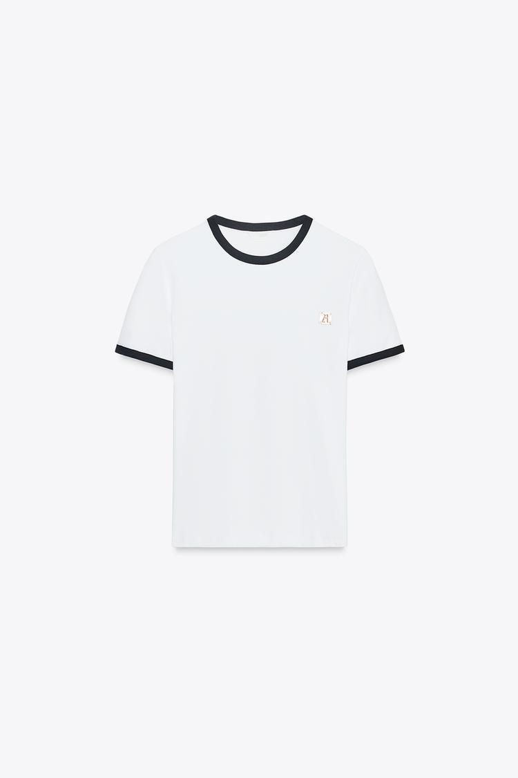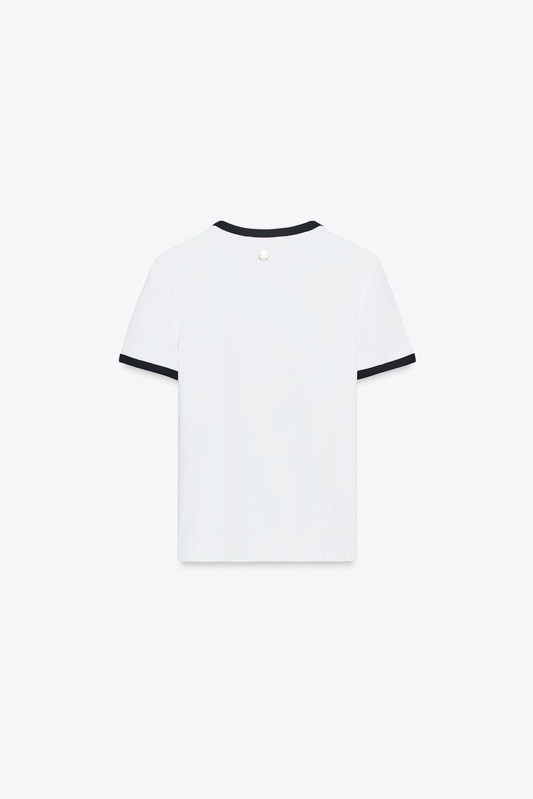 ZARA ФУТБОЛКА С БРОШЬЮ, БЕЛЫЙ