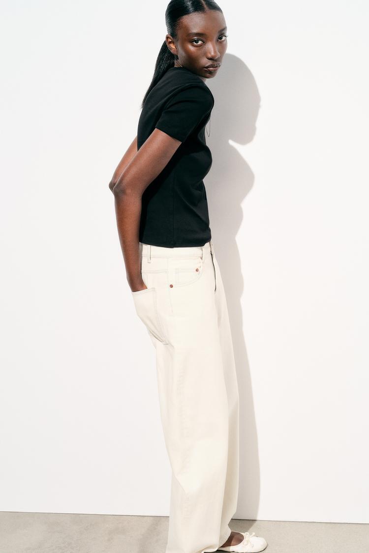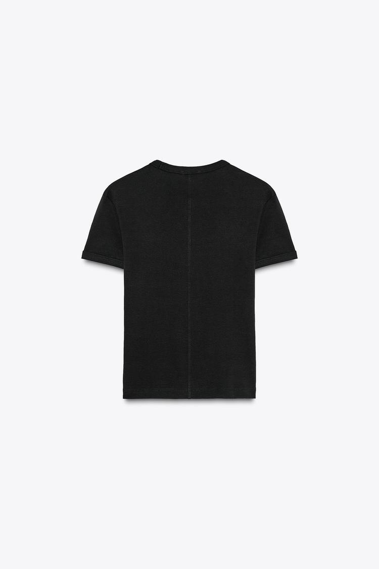 ZARA ФУТБОЛКА С ДЕКОРАТИВНОЙ СТРОЧКОЙ НА СПИНЕ, ЧЕРНЫЙ