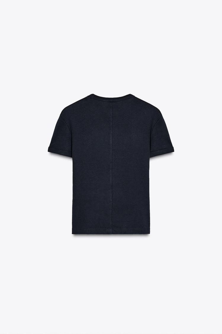 ZARA ФУТБОЛКА С ДЕКОРАТИВНОЙ СТРОЧКОЙ НА СПИНЕ, МОРСКОЙ СИНИЙ