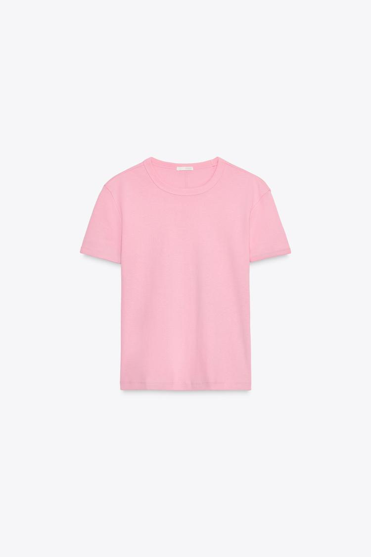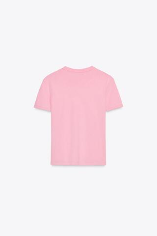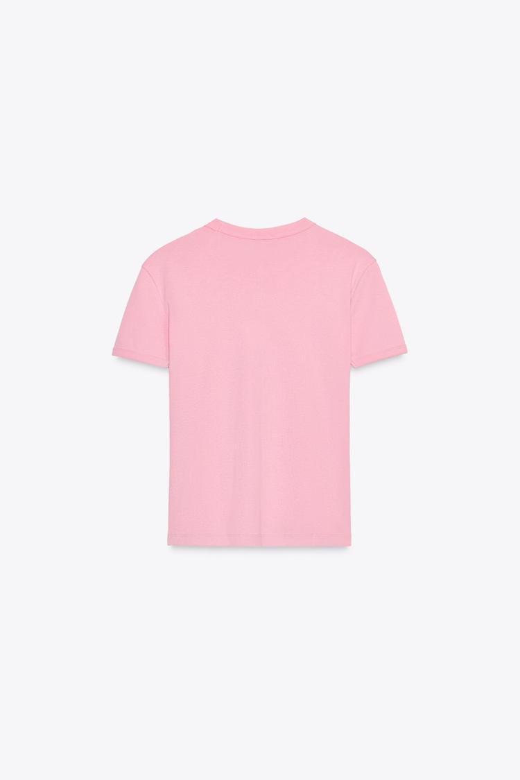 ZARA ФУТБОЛКА С ДЕКОРАТИВНОЙ СТРОЧКОЙ НА СПИНЕ, ПУДРОВО-РОЗОВЫЙ
