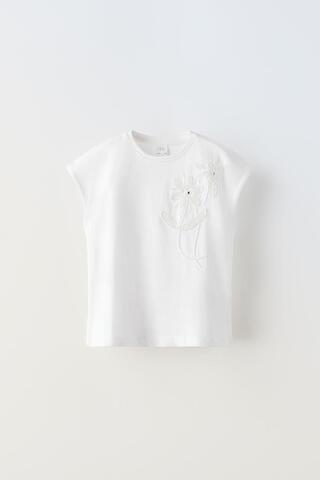 ZARA ФУТБОЛКА С ДЕКОРАТИВНЫМИ ДЕТАЛЯМИ, БЕЛЫЙ