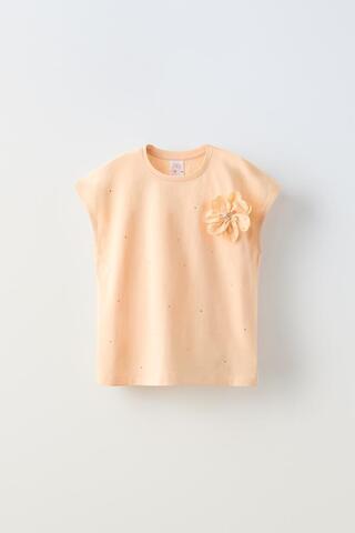 ZARA ФУТБОЛКА С ДЕКОРАТИВНЫМИ ДЕТАЛЯМИ, ОРАНЖЕВЫЙ