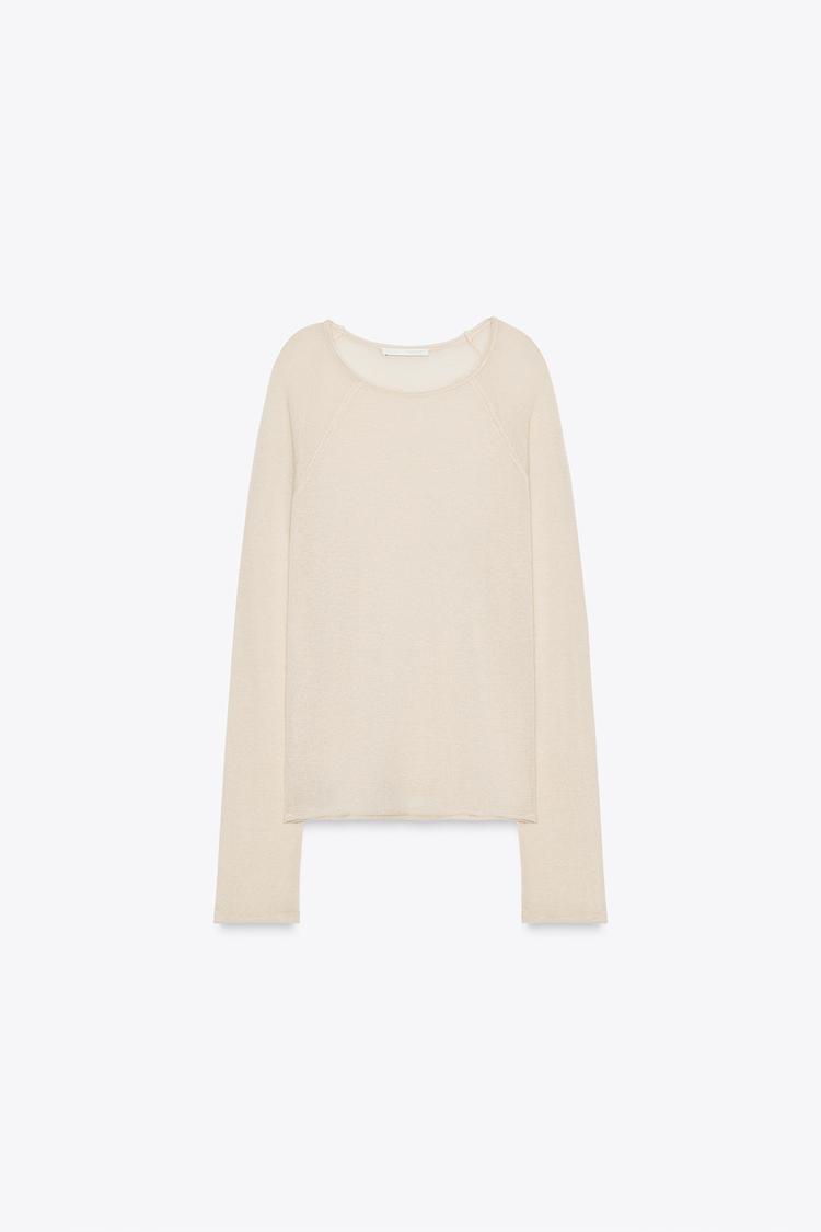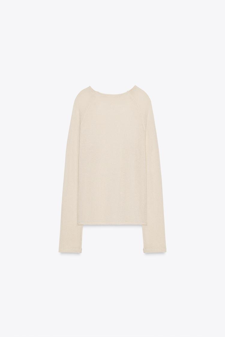 ZARA ФУТБОЛКА С ДЛИННЫМИ РУКАВАМИ, ЭКРЮ