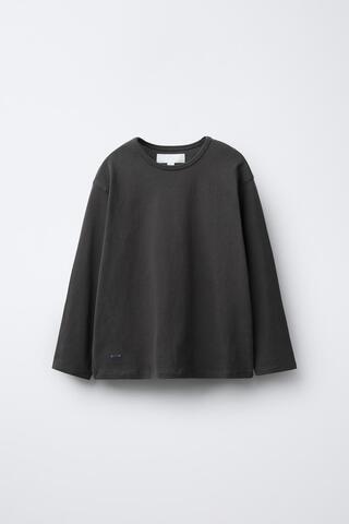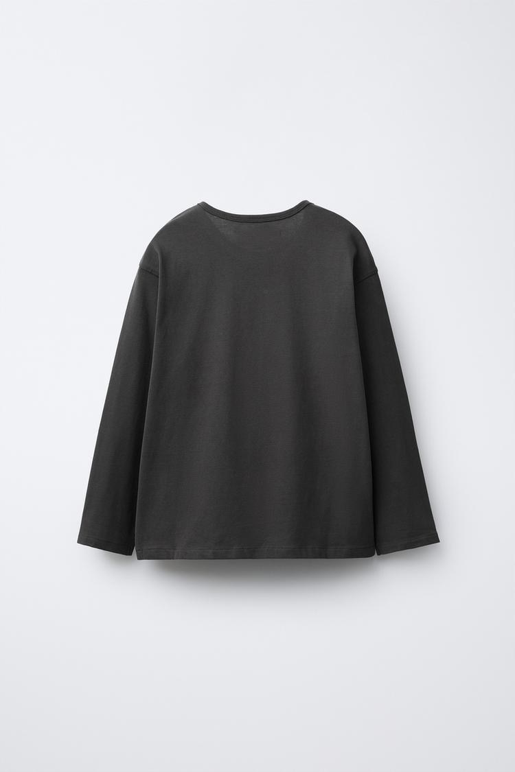 ZARA ФУТБОЛКА С ДЛИННЫМИ РУКАВАМИ И ВЫШИВКОЙ, АНТРАЦИТОВО-СЕРЫЙ