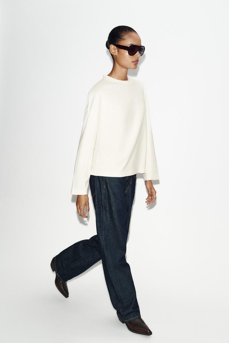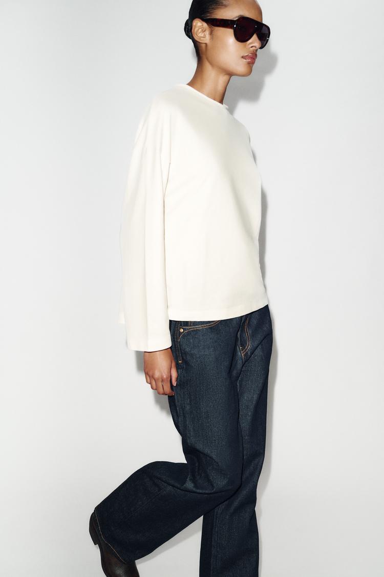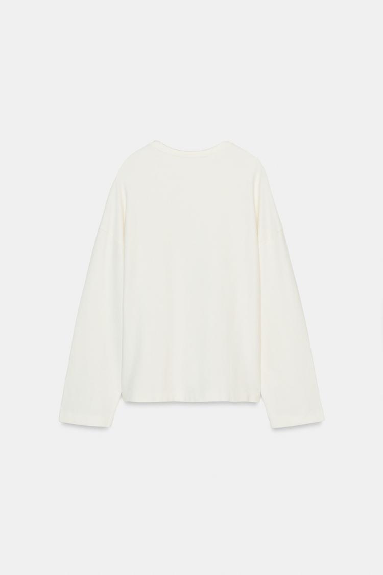 ZARA ФУТБОЛКА С ДЛИННЫМИ РУКАВАМИ, ЖЕЛТОВАТО-БЕЛЫЙ