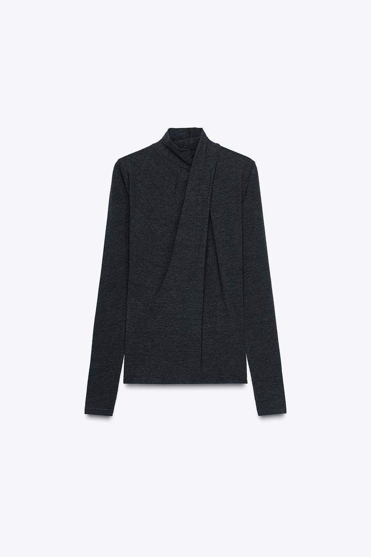 ZARA ФУТБОЛКА С ДРАПИРОВКОЙ СПЕРЕДИ, МАРЕНГО МЕЛАНЖ
