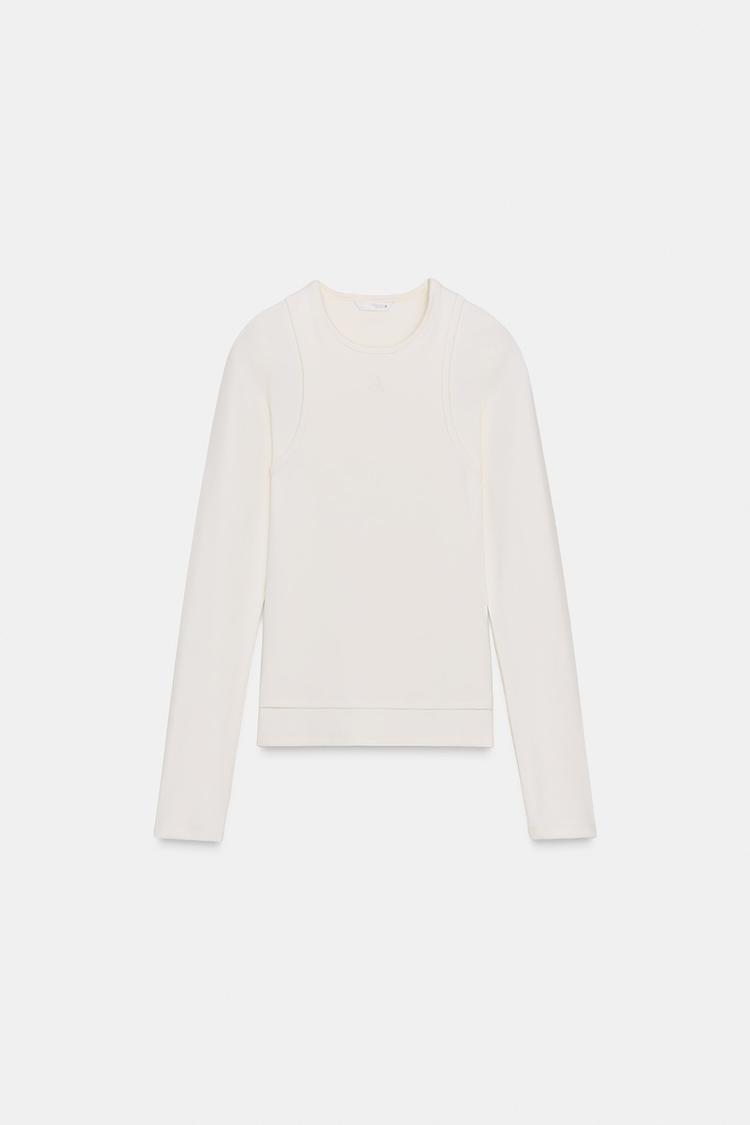 ZARA ФУТБОЛКА С ДВОЙНОЙ ВЫШИВКОЙ, ЭКРЮ