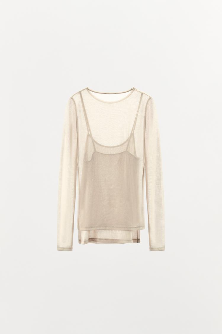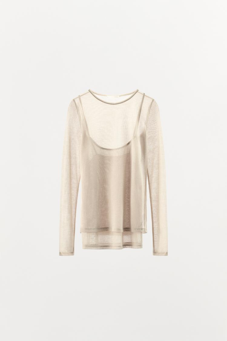 ZARA ФУТБОЛКА С ДВОЙНЫМ ЭФФЕКТОМ ИЗ МЯГКОЙ ТКАНИ, ПЕСОЧНЫЙ МЕЛАНЖ