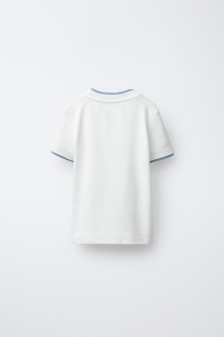 ZARA ФУТБОЛКА С ДВОЙНЫМ ВОРОТНИКОМ И МОДАЛОМ, БЕЛЫЙ