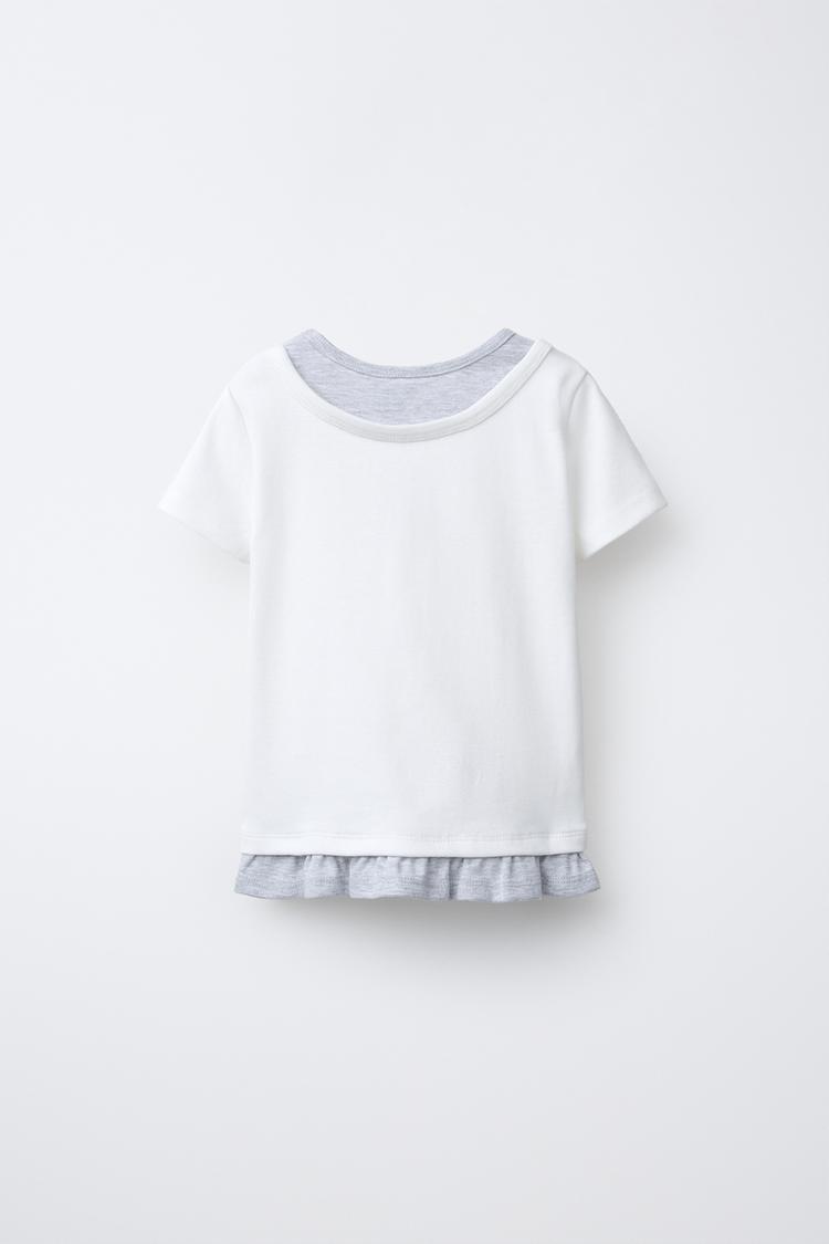 Футболка с двойным воротником и короткими рукавами. Низ с оборками. Вышитая звезда на груди.