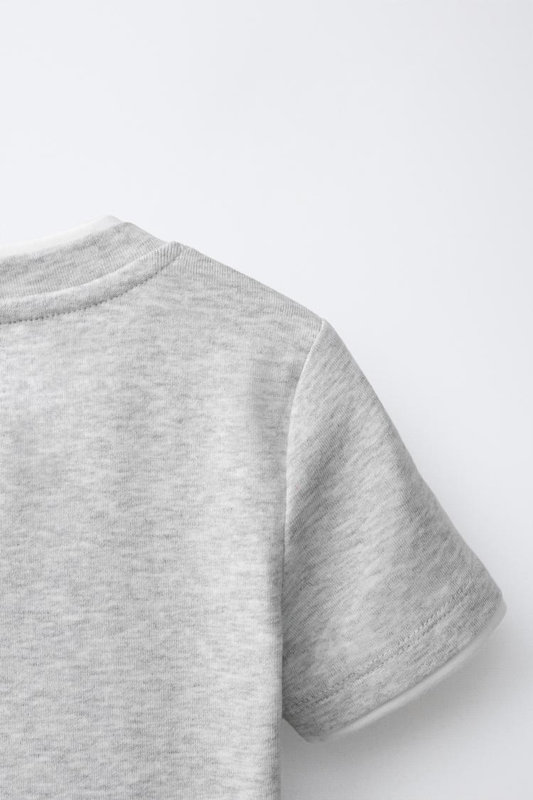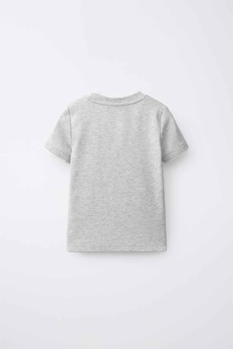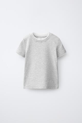 ZARA ФУТБОЛКА С ДВОЙНЫМ ВОРОТНИКОМ ИЗ МОДАЛА, СЕРЫЙ МЕЛАНЖ