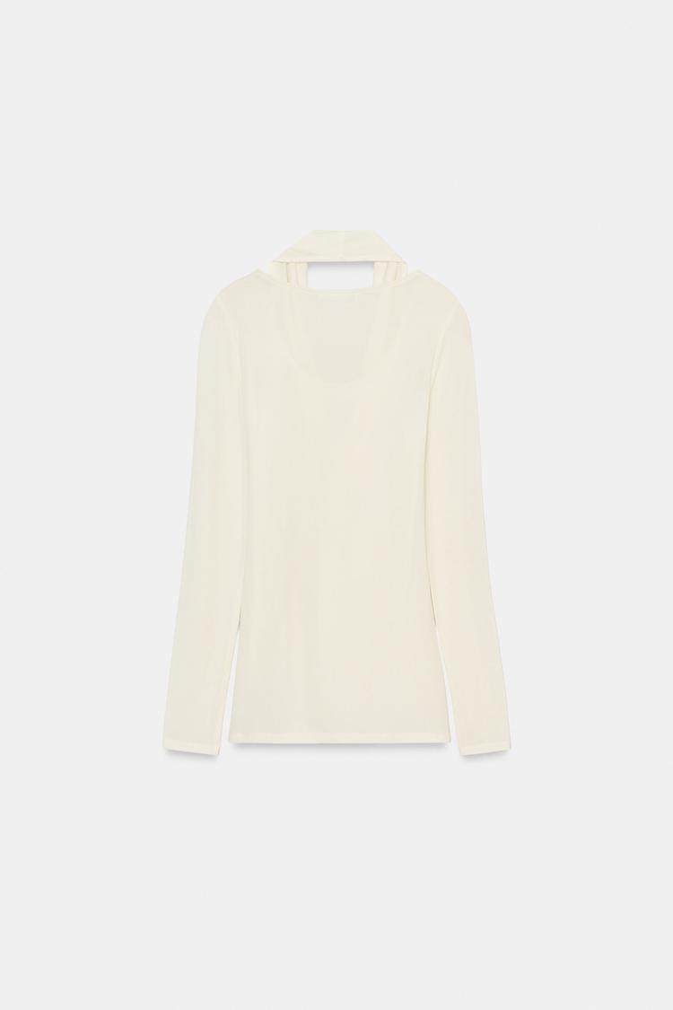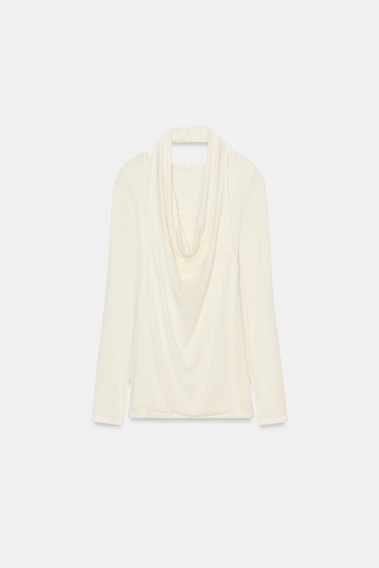 ZARA ФУТБОЛКА С ДВОЙНЫМИ ДЛИННЫМИ РУКАВАМИ, ЖЕЛТОВАТО-БЕЛЫЙ