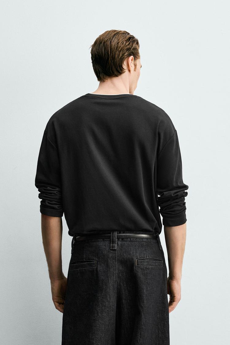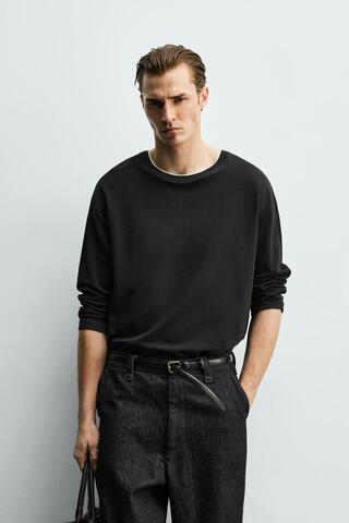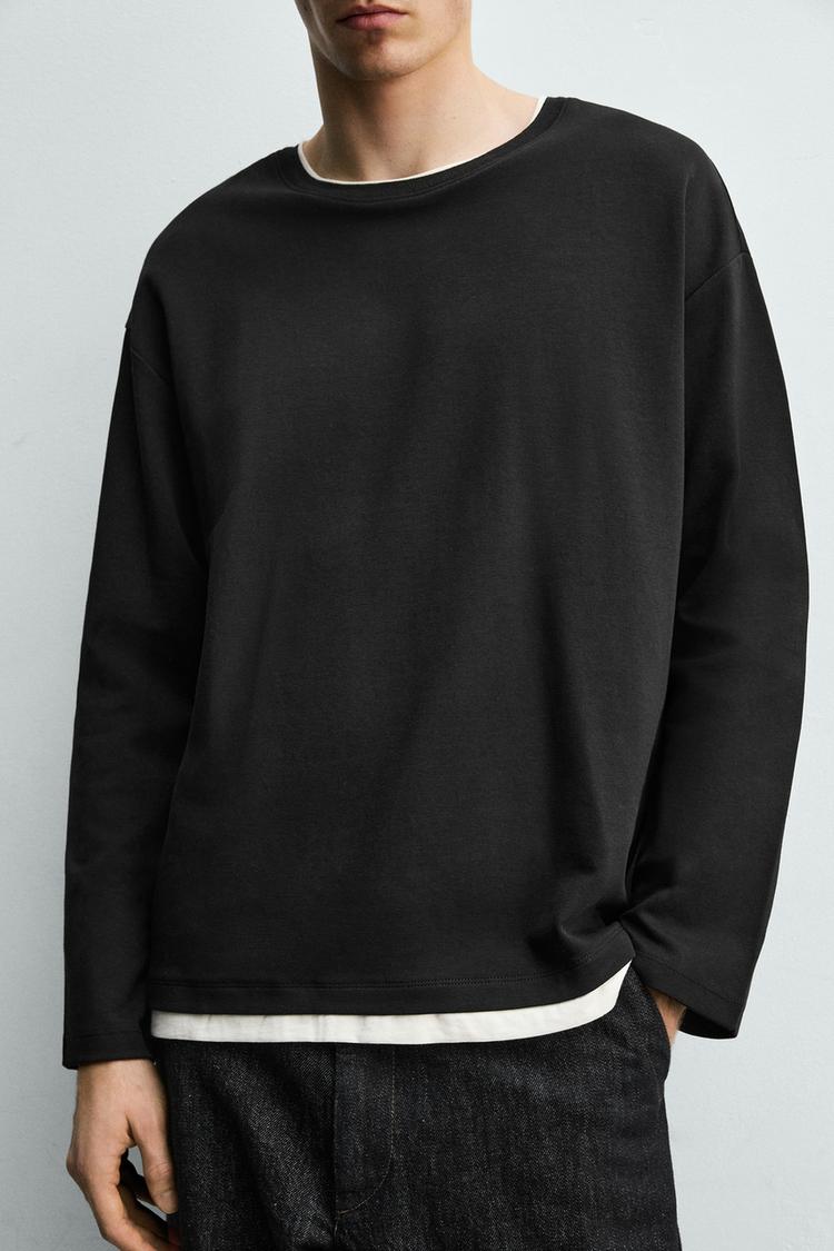 ZARA ФУТБОЛКА С ДВОЙНЫМИ КОНТРАСТНЫМИ ДЕТАЛЯМИ, ЧЕРНЫЙ
