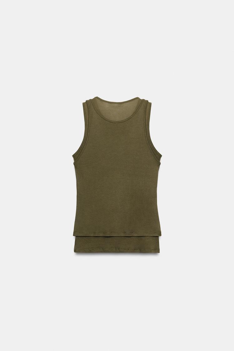 ZARA ФУТБОЛКА С ДВОЙНЫМИ ПРОЙМАМИ, ХАКИ