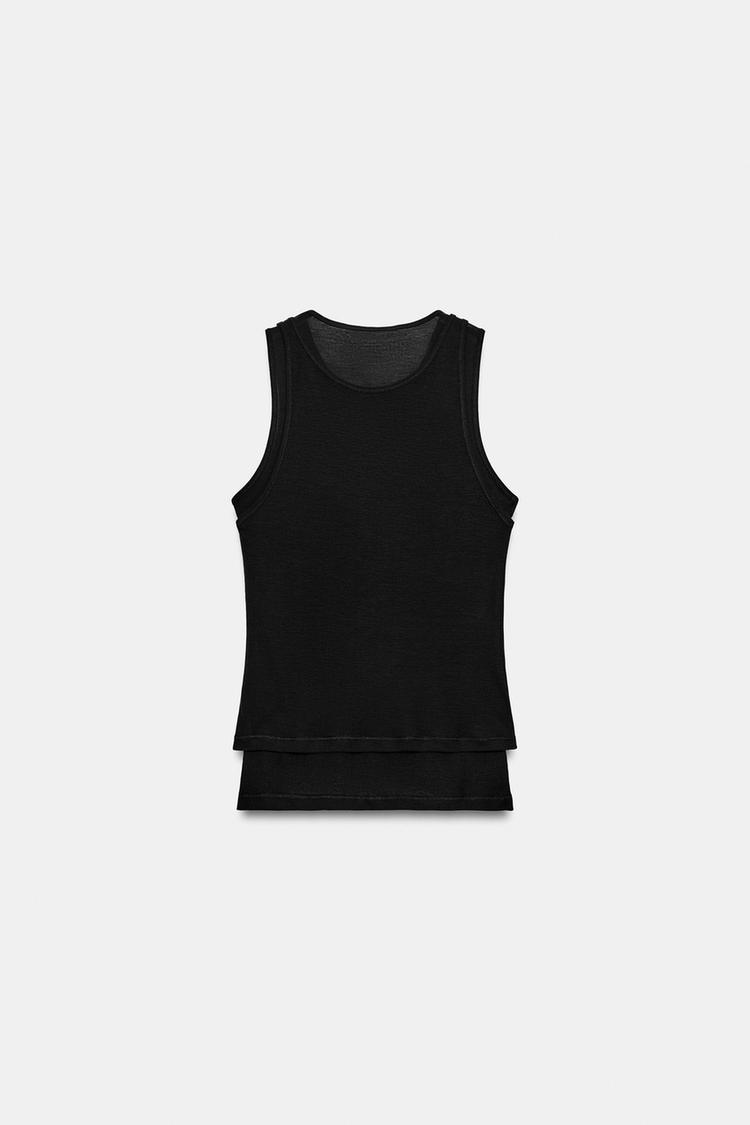 ZARA ФУТБОЛКА С ДВОЙНЫМИ ПРОЙМАМИ, УГОЛЬНЫЙ