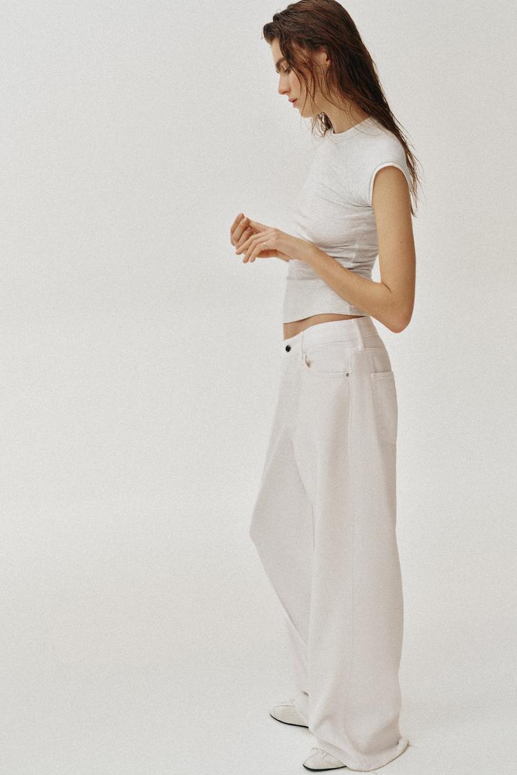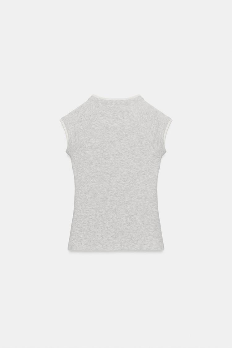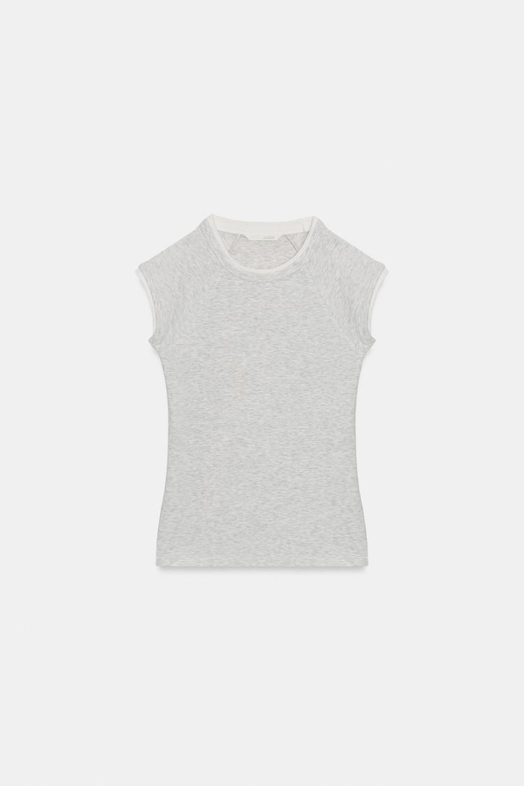 ZARA ФУТБОЛКА С ЭФФЕКТОМ ДВОЙНОГО РУКАВА, СЕРЫЙ МЕЛАНЖ